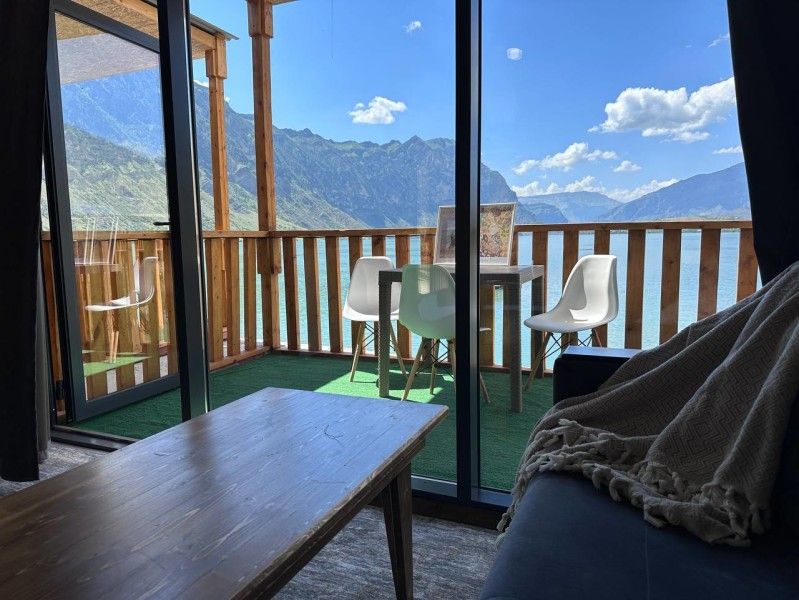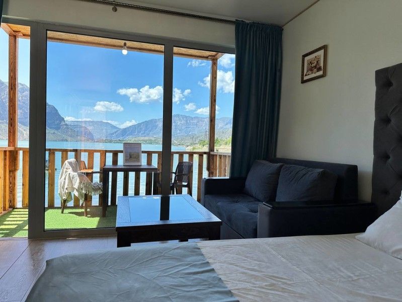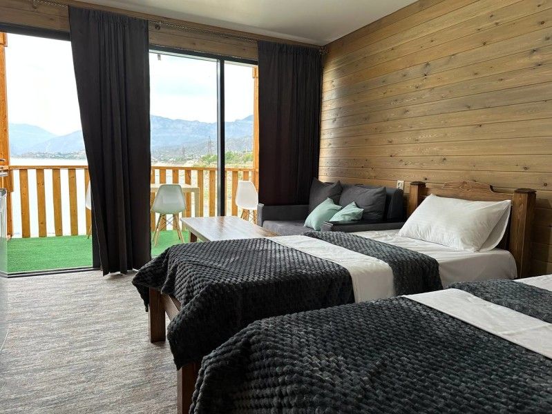 Семейный отдыхДостоинстваОтлично организованный отдых на природе! Гостеприимные хозяева, уютные домики с видом на водохранилище и горы, все удобства (кондиционер, холодильник, чайник, микроволновка) и вкусная еда на территории. Прямо на пирсе можно арендовать сапы, катамаран или заказать прогулку на катере.