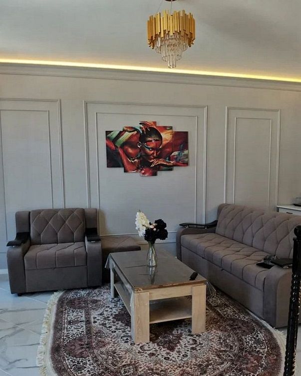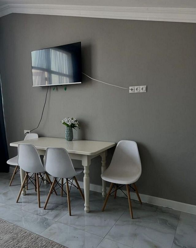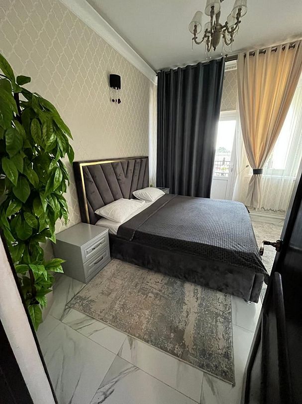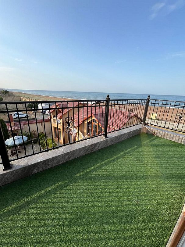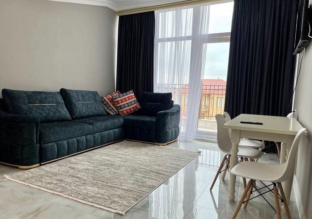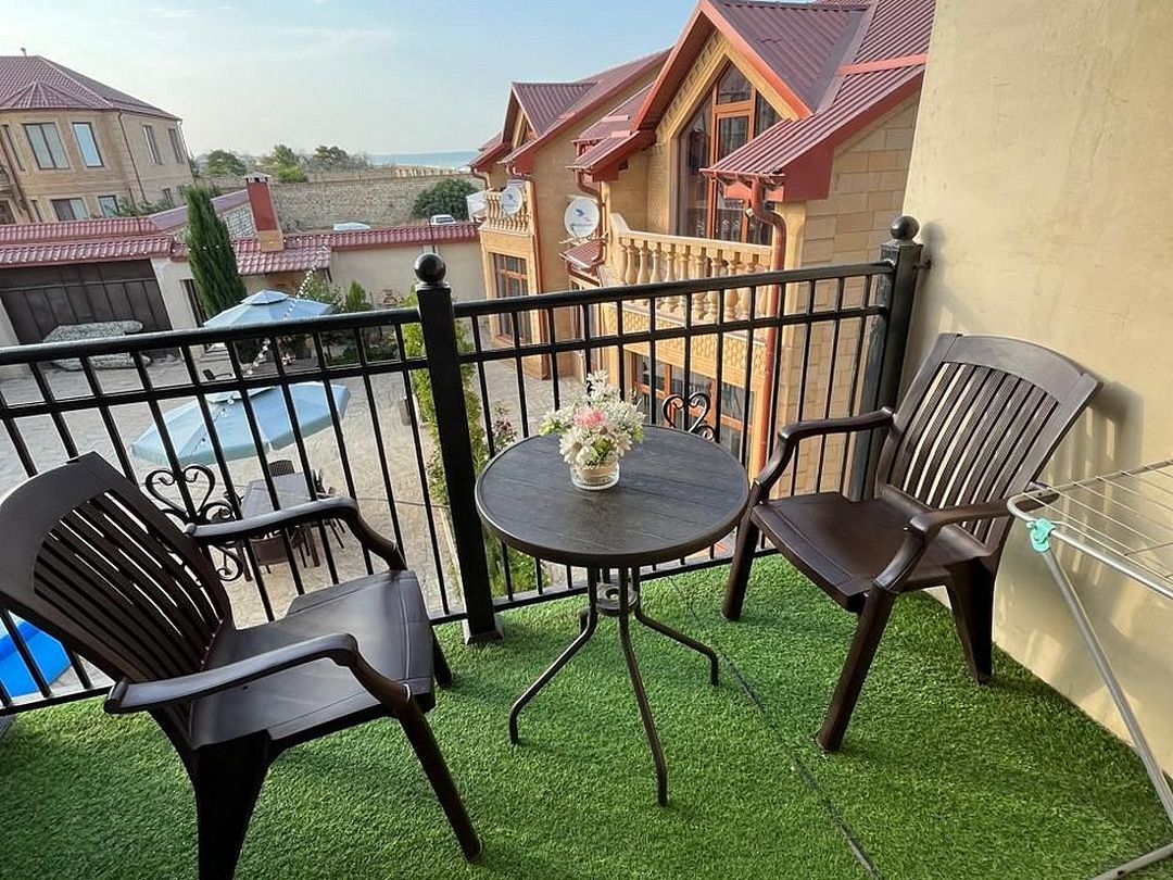 Стандартный номер площадью 80 кв.м с балконом и видом на море, горы. Подходит для размещения 5 человек. (4 основных места и 1 дополнительное) Имеет спальню и гостиную с приятным интерьером. В номере: 1 двуспальная кровать, 1 двуспальный диван, 1 кресло-кровать. Имеется телевизор, кондиционер, вентилятор, шкаф, вешалка, обеденный стол, комод, журнальный столик, холодильник, СВЧ, чайник, стулья. Индивидуальная ванная комната: душ, раковина, туалет. В стоимость входит: Постельное бельё, полотенца, мыло. WI-Fi бесплатно на всей территории. Бесплатная частная парковка за территорией.Спальные места
