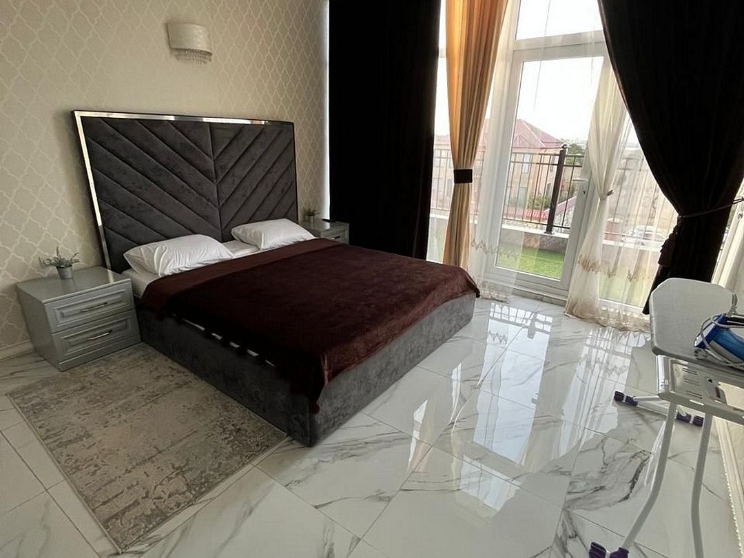 Вип номер площадью 130 кв.м с террасой и видом на море, горы. Подходит для размещения 6 человек. Имеет 2 спальни и гостиную с приятным интерьером. В номере: 2 двуспальнаые кровати, 1 двуспальный диван. Имеется телевизор, кондиционер, вентилятор, шкаф, вешалка, обеденный стол, комод, журнальный столик, плита, холодильник, СВЧ, чайник, стулья. Индивидуальная ванная комната: душ, раковина, туалет. В стоимость входит: Постельное бельё, полотенца, мыло. WI-Fi бесплатно на всей территории. Бесплатная частная парковка за территорией.Спальные места