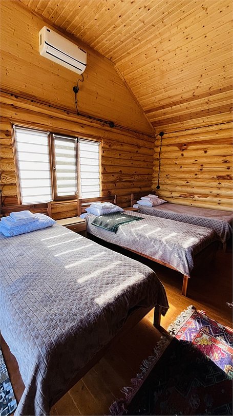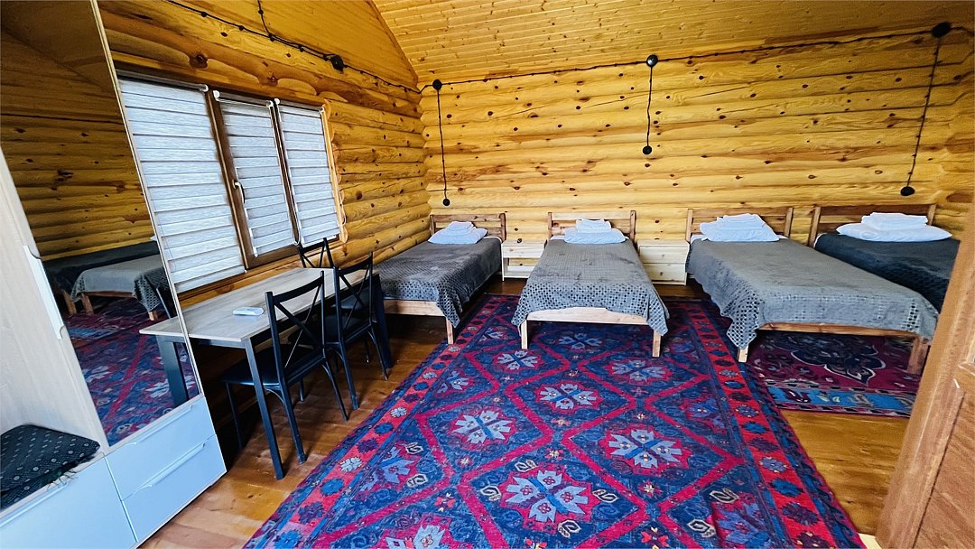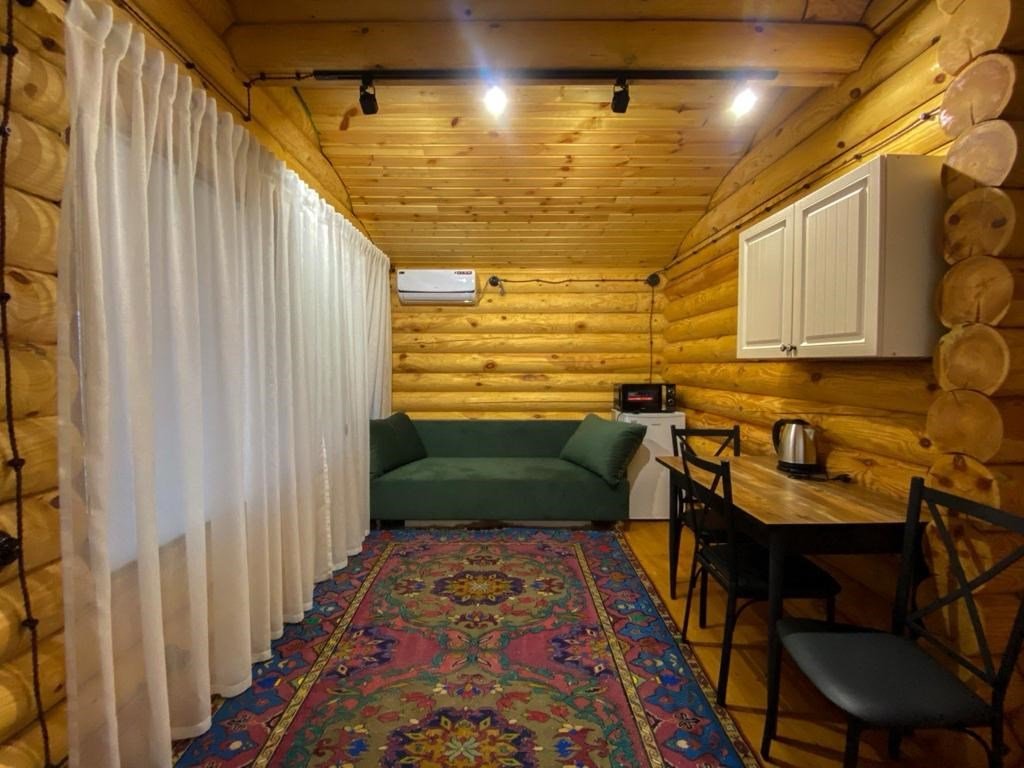 Дом выполнен из сруба, с раздельными кроватями , имеется небольшой дворик, оснащен всем необходимым для комфортного проживания.Услуги и удобства