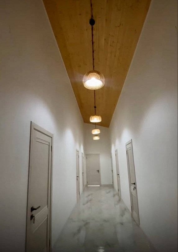 Wi-Fi, интернет, кондиционер, фен, микроволновая печь, обогреватель, душевая кабина, водонагреватель, банные полотенца, тапочки, тумбы, стулья, шкаф для одежды, унитаз, раковина, общая ванная комната, четыре односпальные кровати, стол, туалет, мини-холодильник, туалетные принадлежности премиум-класса, мыло, Android TVВ коттедже