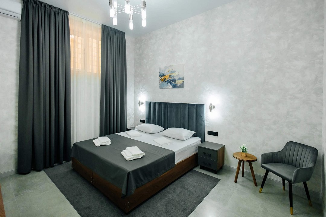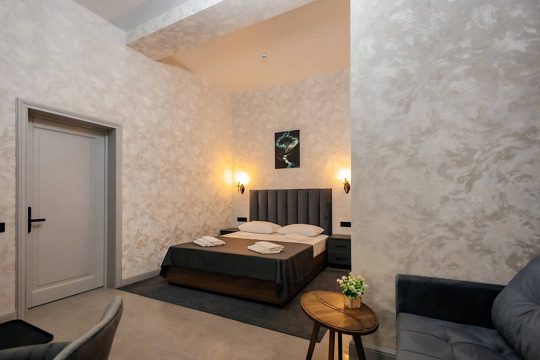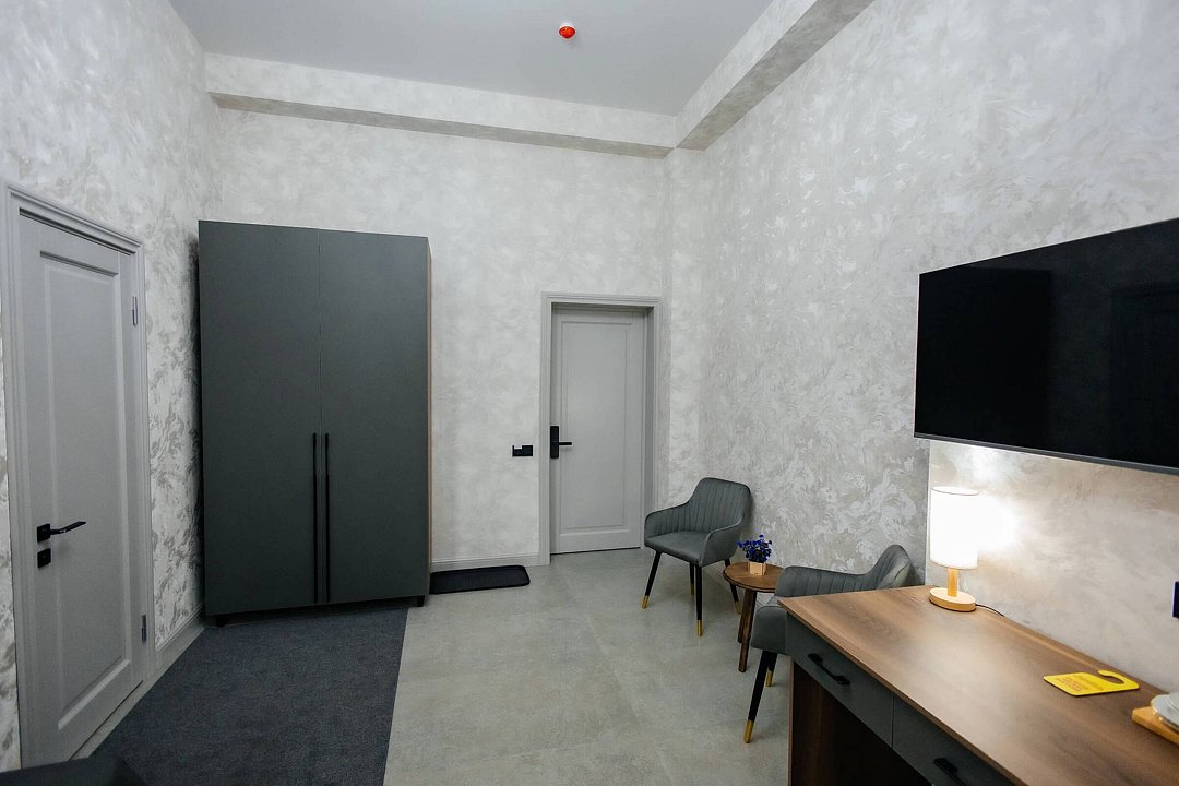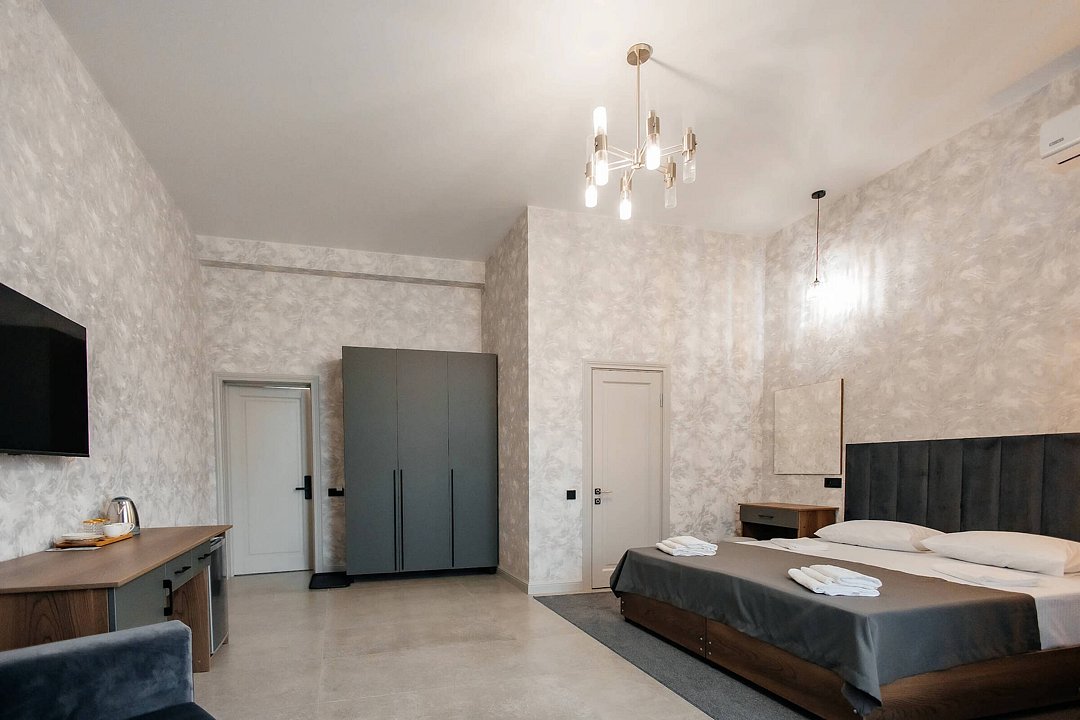 Номера с удобной мебелью и оснащены всей необходимой техникой. Просторные светлые окна наполняют пространство естественным светом и открывают вид на древний город. Мы уделяем особое внимание деталям: гостей ждут качественные постельные принадлежности, мягкие полотенца, безупречная чистота и порядок.