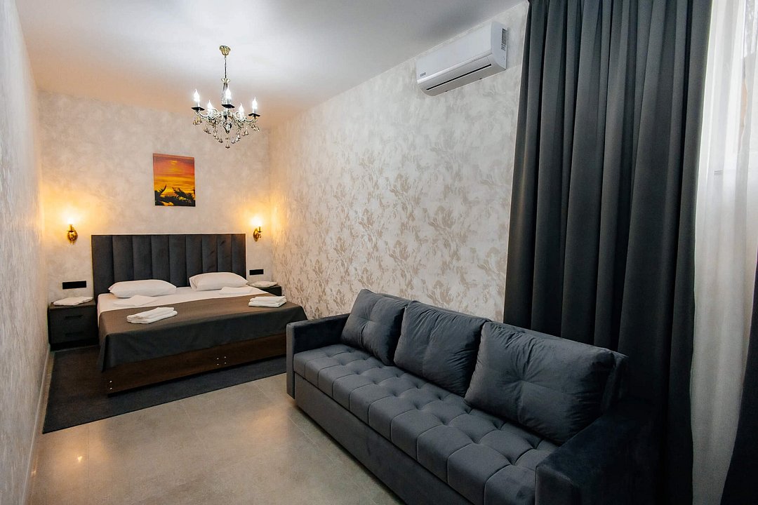 Номер Люкс с террасой — это воплощение роскоши и комфорта. Здесь гости смогут по-настоящему насладиться изысканным отдыхом.