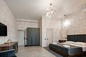 Номер выполнен в элегантном стиле с использованием дорогих материалов и изысканных деталей. Просторная комната оснащена удобной мебелью ручной работы, современной техникой премиум-класса и всеми необходимыми аксессуарами для вашего удобства. Большие панорамные окна открывают захватывающий вид на древнейший восточный город, создавая неповторимую атмосферу и наполняя пространство светом.