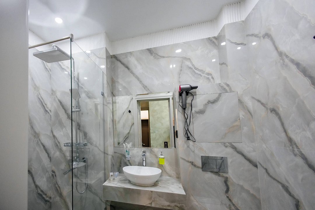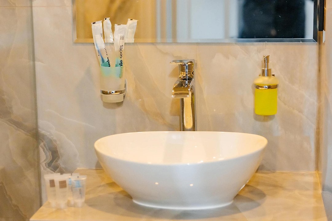 Номер полулюкс комфорт сочетает в себе теплоту, минимализм и удобство. Интерьер выполнен в нейтральных оттенках с акцентом на мягкий свет и текстуры. Всё здесь направлено на то, чтобы создать ощущение уюта и уединения. Идеально подходит как для пар, так и для гостей, которые ценят эстетику и комфорт.