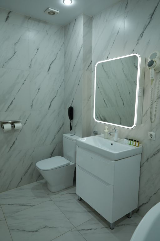 Просторная ванная комната, оборудованная угловой ванной. В распоряжении гостей этого номера халаты и тапочки. В каждой комнате есть телевизор, мини-бар имеет вид полноразмерного холодильника. Некоторые номера в данной категории имеют небольшой уютный балкон с видом на озеро Ак-Гёль, где очень приятно посидеть в хорошую погоду.