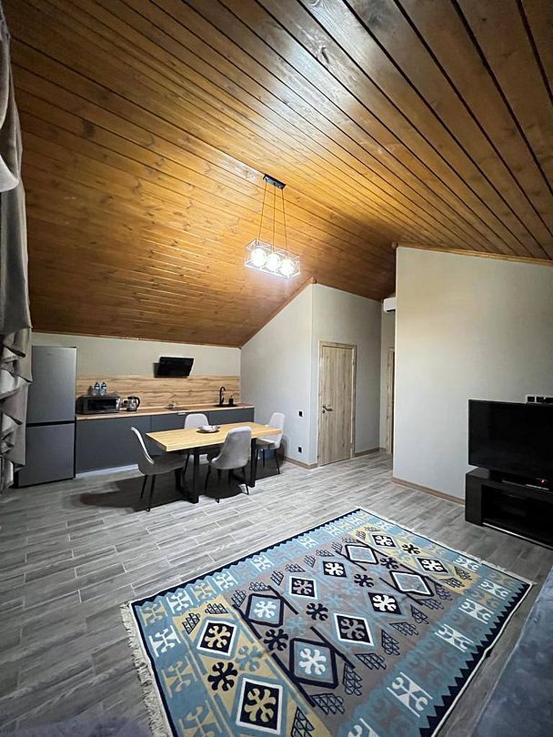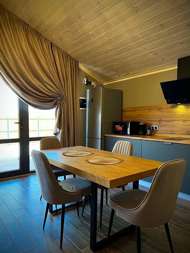 В домике есть все необходимое для комфортного проживания: удобная мебель, бытовая техника, Wi-Fi и телевизор. Также предоставляется постельное белье, полотенца и другие необходимые принадлежности.