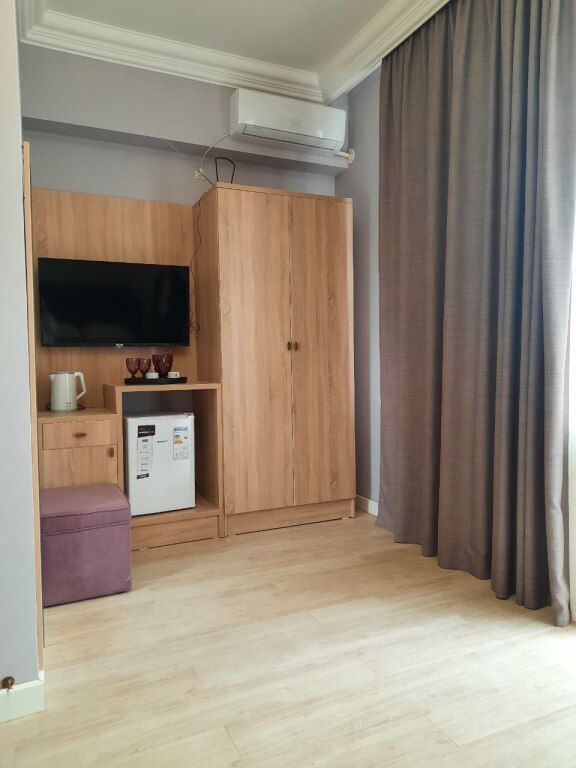 В номере вас будут ждать телевизор и халат. Оснащение зависит от выбранной категории номера.