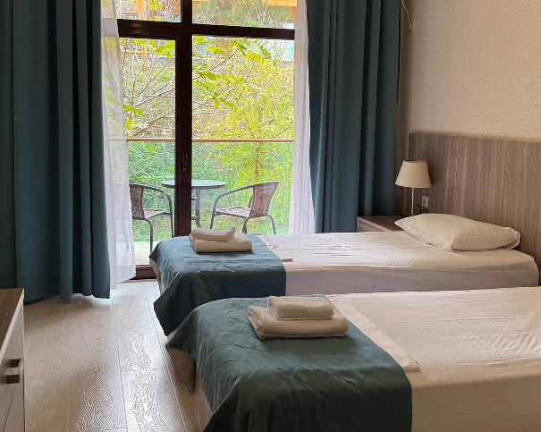Стандарт двухместный, горная сторона (без балкона, 1 этаж). Корпуса 6,7,8