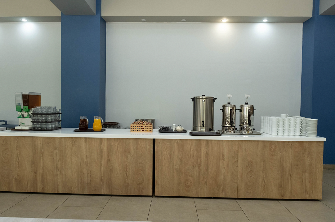 Существует возможность проветривания помещения. Есть зона для проведения кофе-брейков и фуршетов.