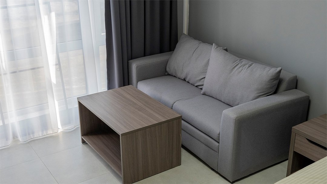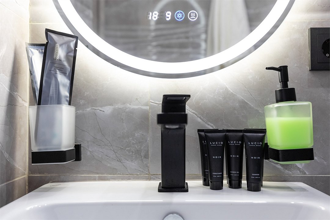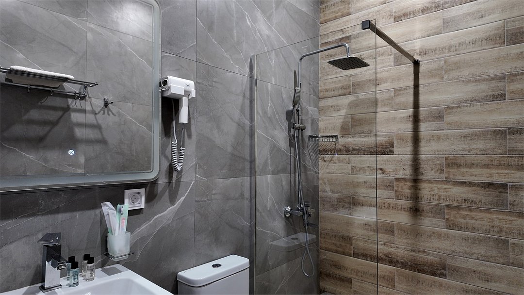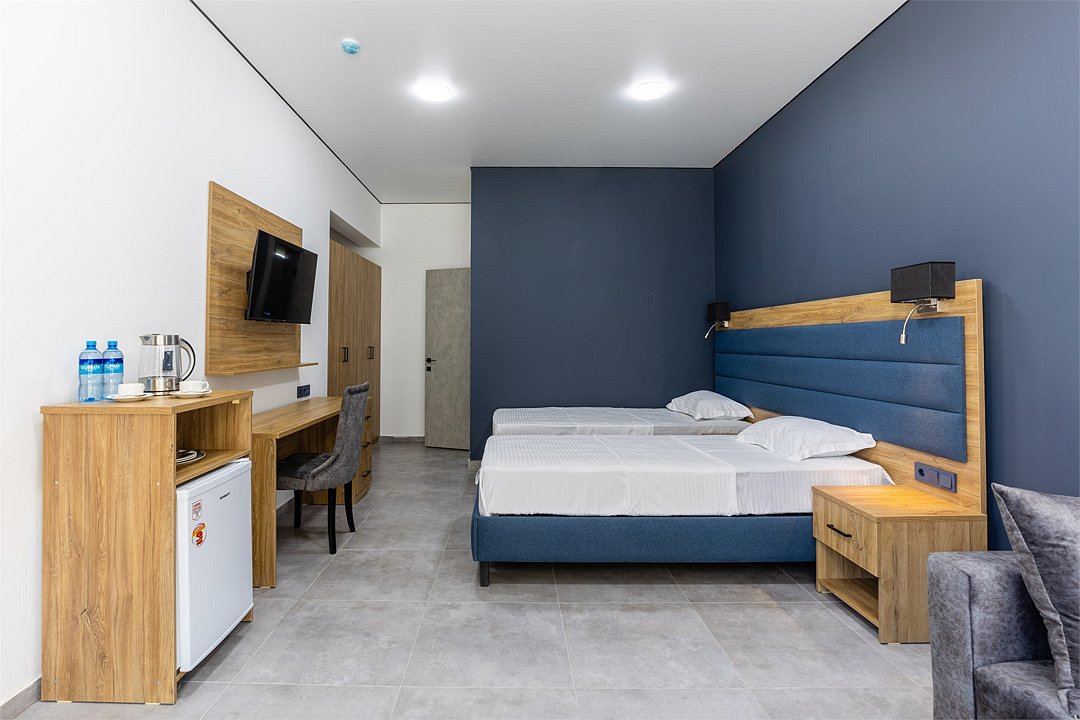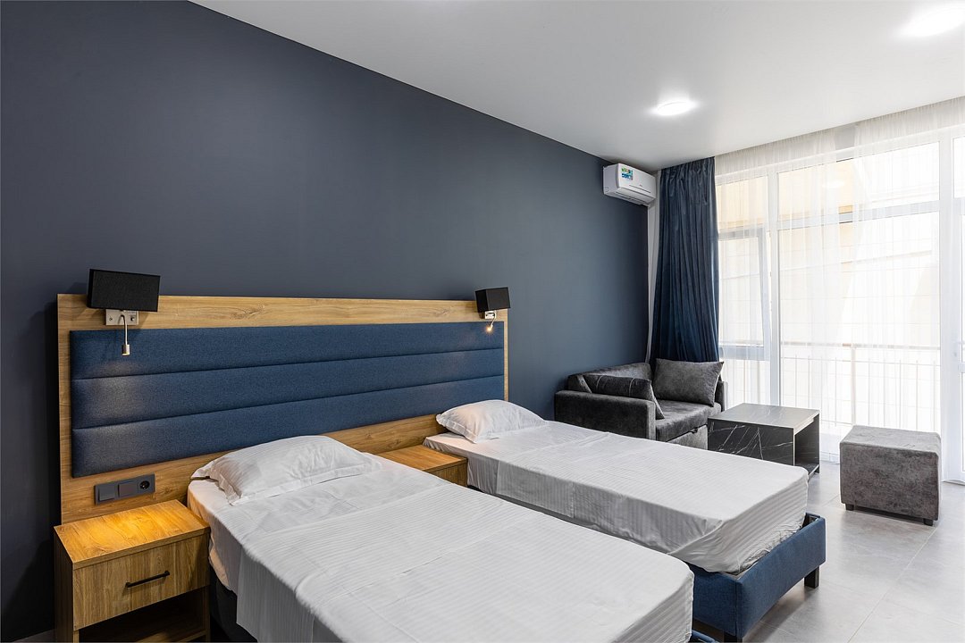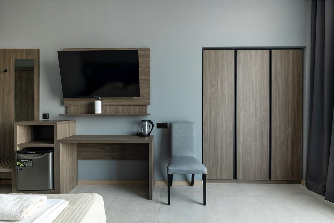 Wi-Fi, интернет, кондиционер, светильник, фен, система безопасности, банные полотенца, пляжные полотенца, кровать «King size», две односпальные кровати, диван, тумбы, шкаф для одежды, гардеробная, вешалки, багажная тумба, зеркало, мини-бар, чайник, вид во двор, стул, туалет, мини-холодильник, телевизор со Smart TV, гигиенический душ, кресло-кровать, бутилированная вода, мыло, коворкинг, без питомцев, Android TVВ гостиничном номере