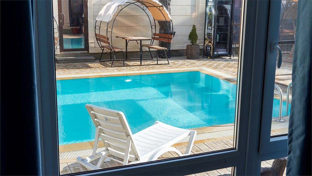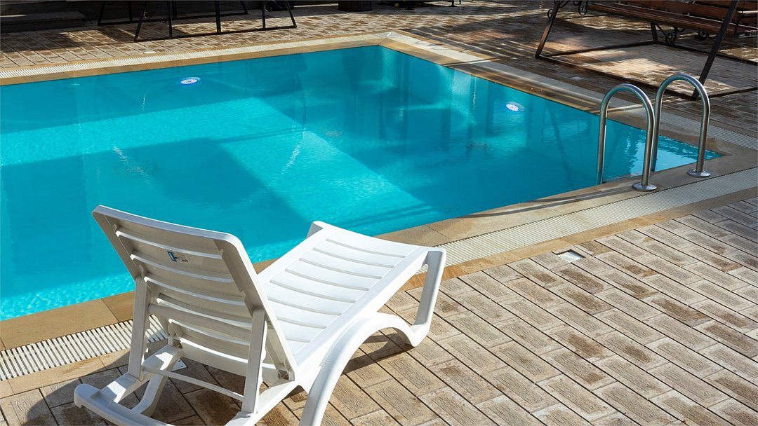 Кристально чистая вода с подогревом на внутренней территории отеля для комфортного и уединенного отдыха наших гостей. Бассейн разделен на взрослую и детскую зоны.