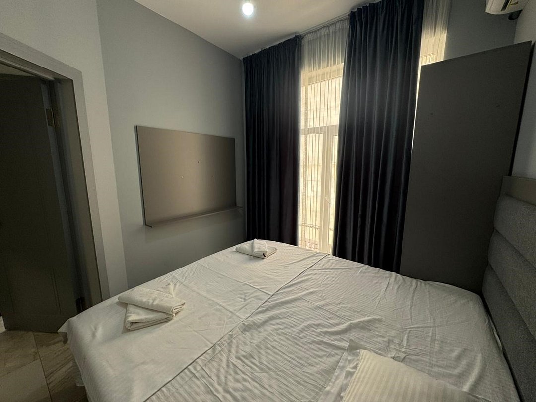 Wi-Fi, интернет, кондиционер, фен, банные полотенца, пляжные полотенца, кровать «King size», тумбы, шкаф для одежды, гардеробная, вешалки, зеркало, сейф, раковина, вид во двор, стул, туалет, сплит-система, мини-холодильник, москитная сетка, телевизор со Smart TV, номер для некурящих, гигиенический душ, услуги прачечной (платно), вешалки-плечики, бутилированная вода, мыло, коворкинг, еда на вынос (за дополнительную плату), без питомцевВ гостиничном номере