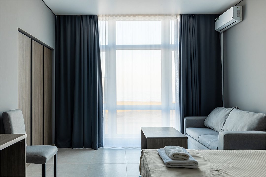 Wi-Fi, интернет, кондиционер, светильник, фен, система безопасности, душевая кабина, банные принадлежности, банные полотенца, пляжные полотенца, тапочки, терраса, две односпальные кровати, диван, тумбы, шкаф для одежды, вешалки, журнальный столик, багажная тумба, мини-бар, чайник, раковина, душ, вид на море, две кровати «King size», туалетный столик, стул, туалет, телевизор со Smart TV, номер для некурящих, гигиенический душ, кресло-кровать, бутилированная вода, мыло, коворкинг, еда на вынос (за дополнительную плату), без питомцев, Android TVВ гостиничном номере