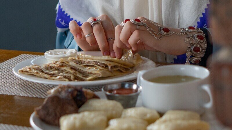 Изысканные блюда европейской, восточной и дагестанской национальной кухни. Ресторан работает с 11:00 до 23:00, а завтраки с 07:00 до 10:30.