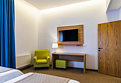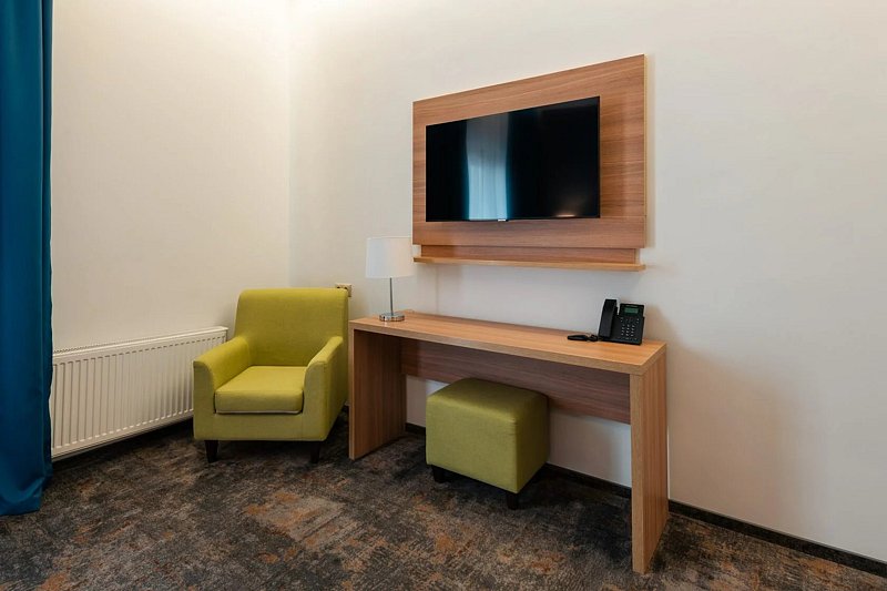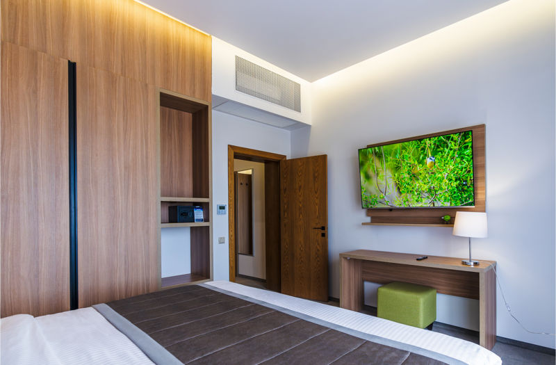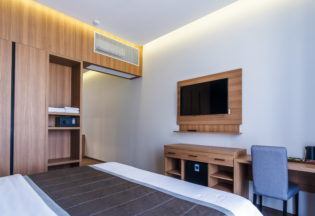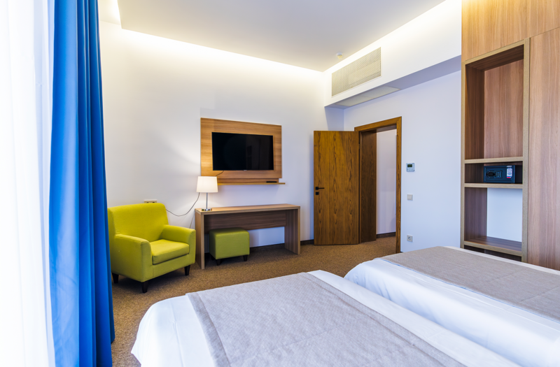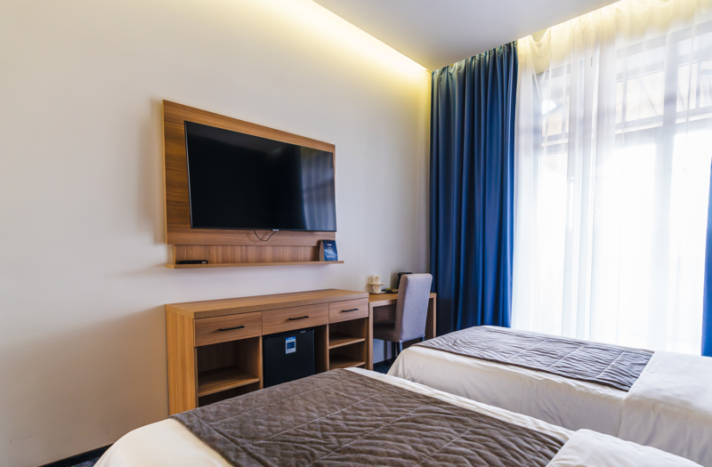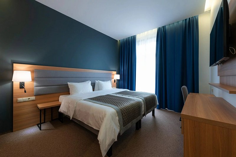Номер категории комфорт прекрасно подходит как для отдыха, так и для работы. Для комфортного проживания наши номера оснащены всем необходимым: кровать с приятным ортопедическим матрацем, телевизор, функциональный шкаф, кондиционер и рабочая зона. Ванная комната соответствует европейским стандартам