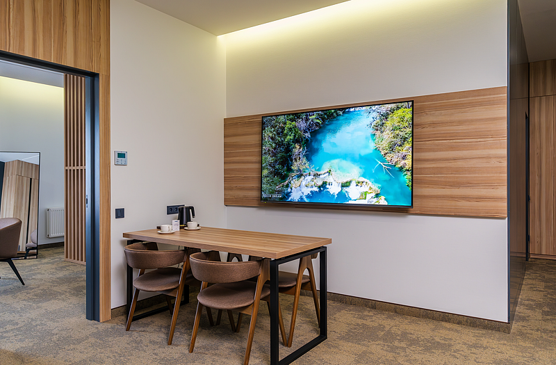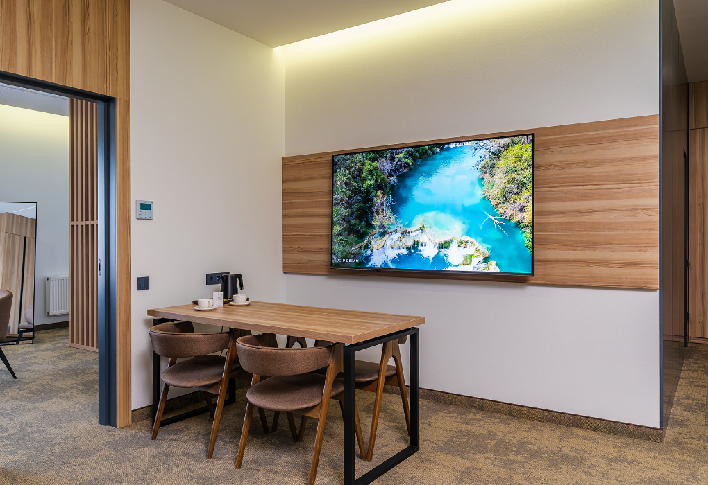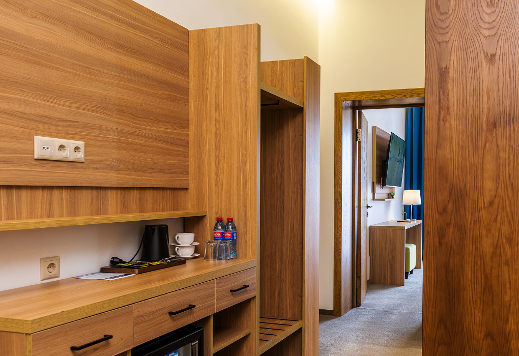 Просторный двухкомнатный номер с двумя кроватями, удобной рабочей зоной и Smart TV - идеальное сочетание для тех, кто ценит продуктивную работу и качественный отдых.