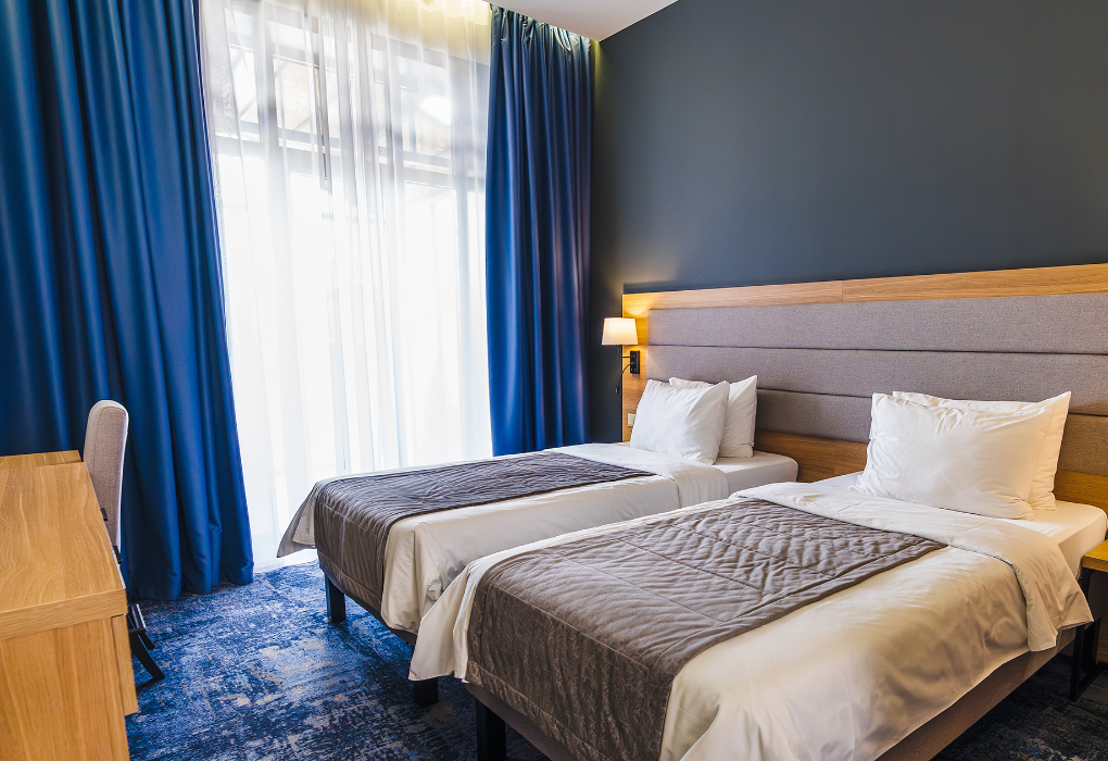Уютный номер с двумя кроватями и Smart-TV, для ценителей комфортной рабочей зоны и продуктивного отдыха.