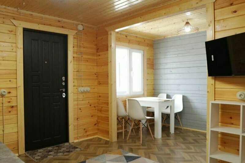 В номере: 1 двуспальный диван и 4 односпальные кровати. Имеется терраса и отдельный вход. Обеденный стол. Кухня, посуда, столовые приборы. СВЧ, чайник холодильник, электрическая плитка. Телевизор, кондиционер, шкаф, вешалка, стулья, корзина для мусора. Индивидуальная ванная комната: душ, раковина, туалет.