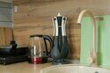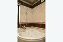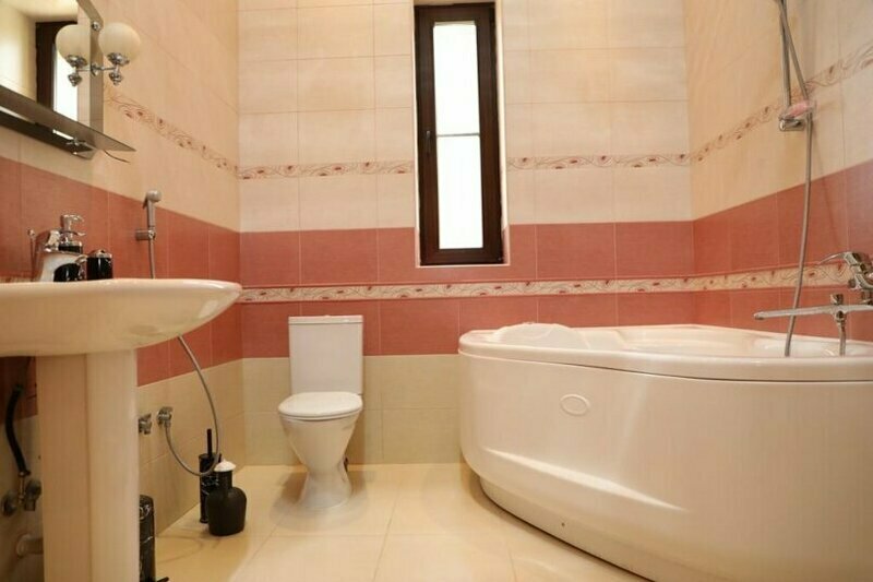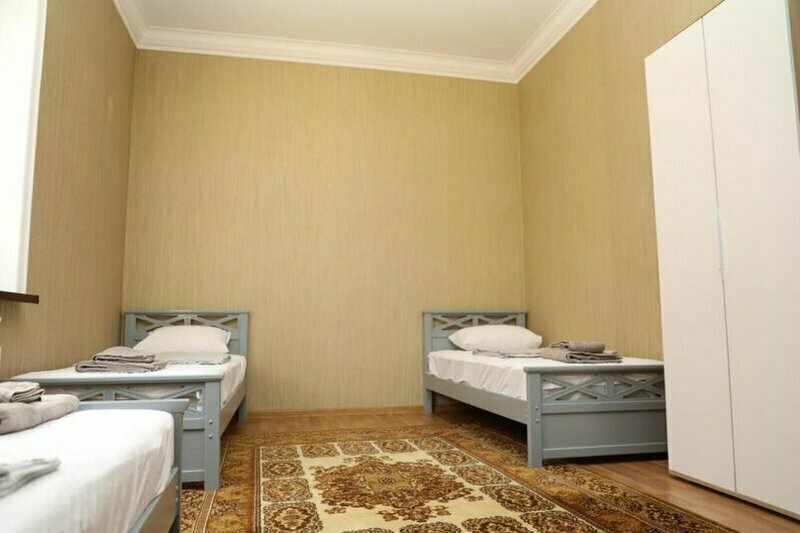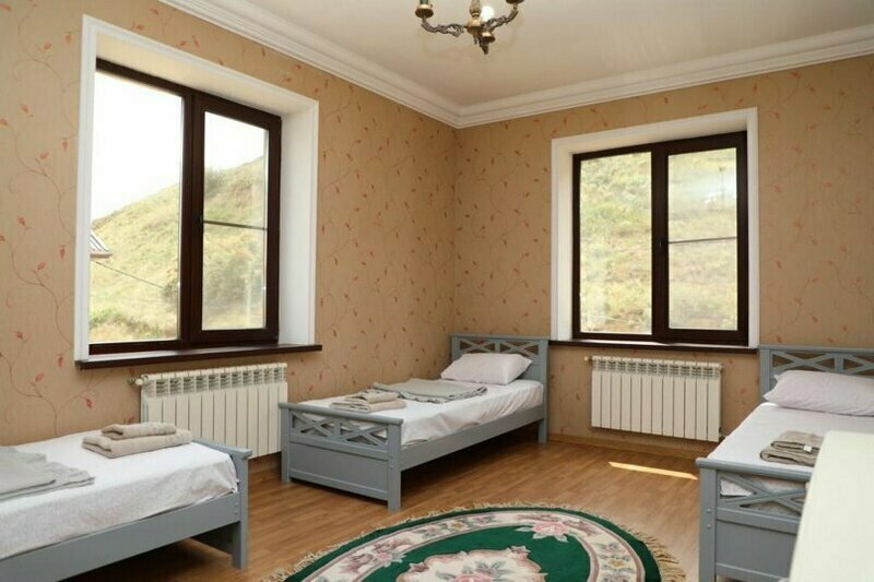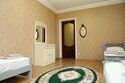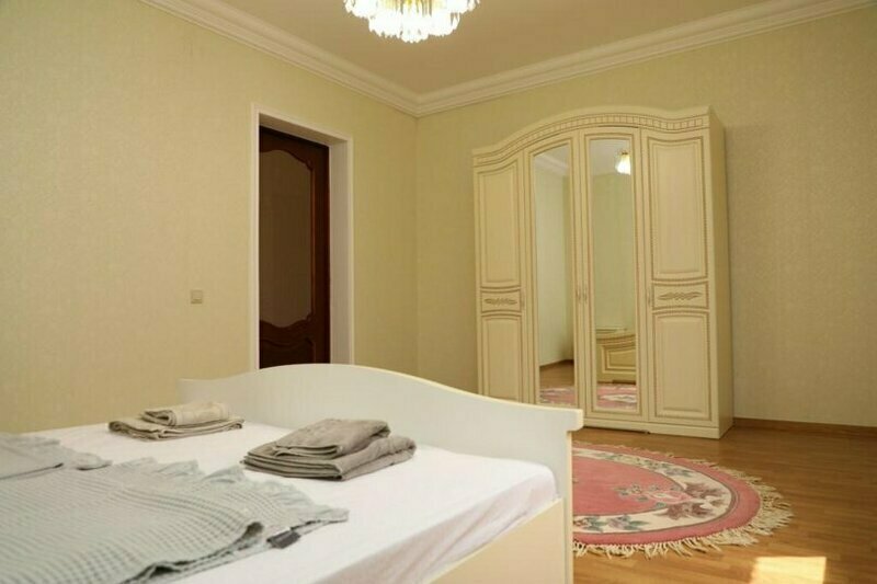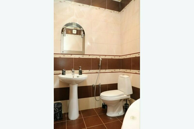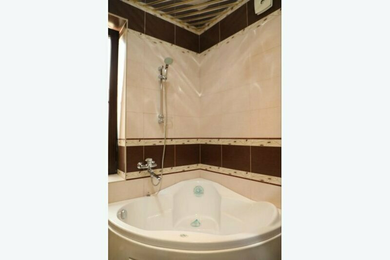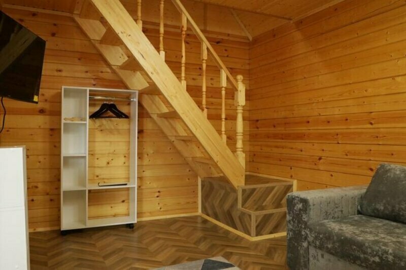 Имеет спальню с приятным интерьером. В номере: 2 односпальных дивана и 1 двуспальная кровать. Имеется отдельный вход. Обеденный и журнальный столики. Кухня, посуда, столовые приборы. СВЧ, чайник, холодильник, электрическая плитка. Телевизор, кондиционер, шкаф, вешалка, стулья, корзина для мусора. Индивидуальная ванная комната: душ, раковина, туалет.