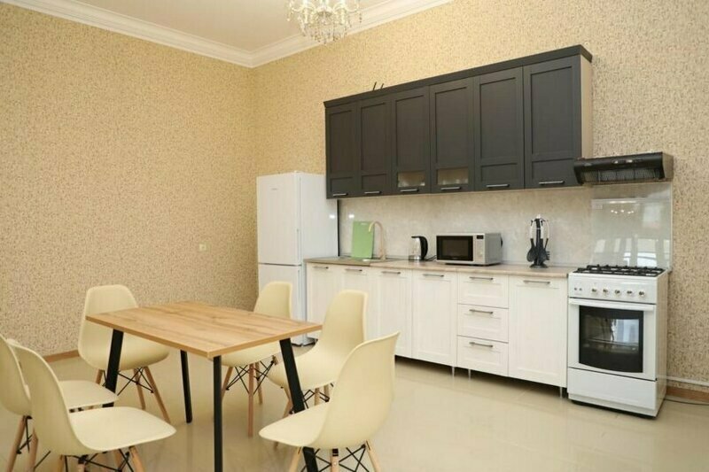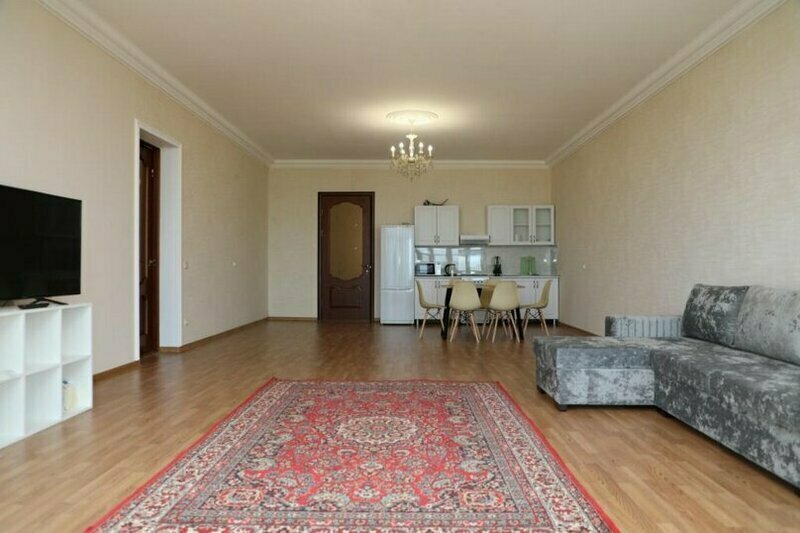 Апартаменты двухкомнатные, площадь 100 м2 с видом во двор. Подходит для размещения 5 человек. Имеет гостиную и спальню с приятным интерьером.