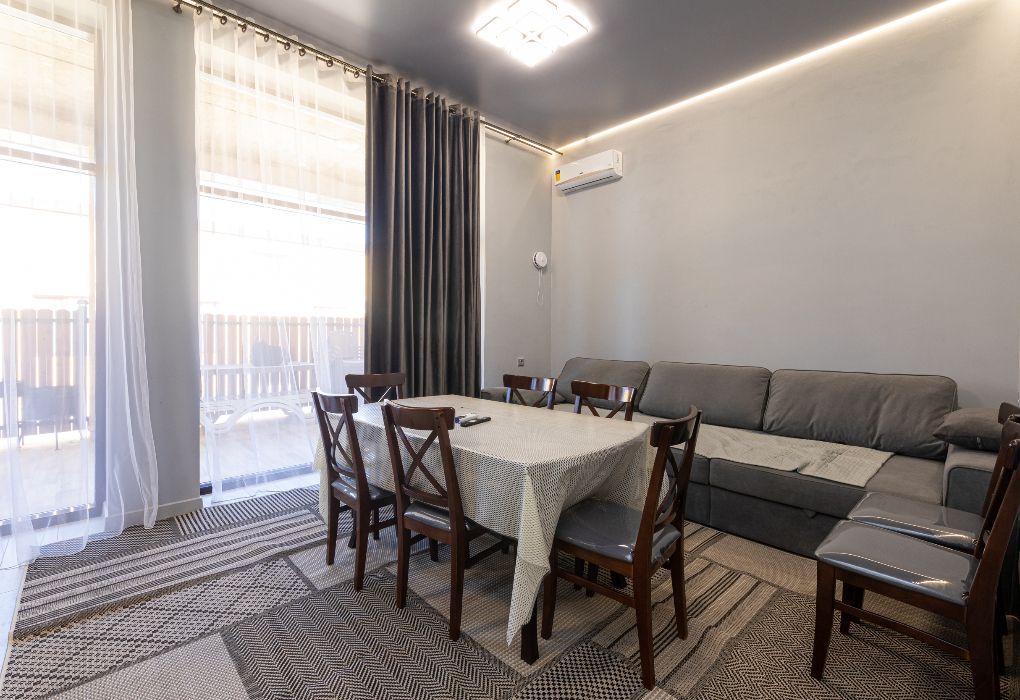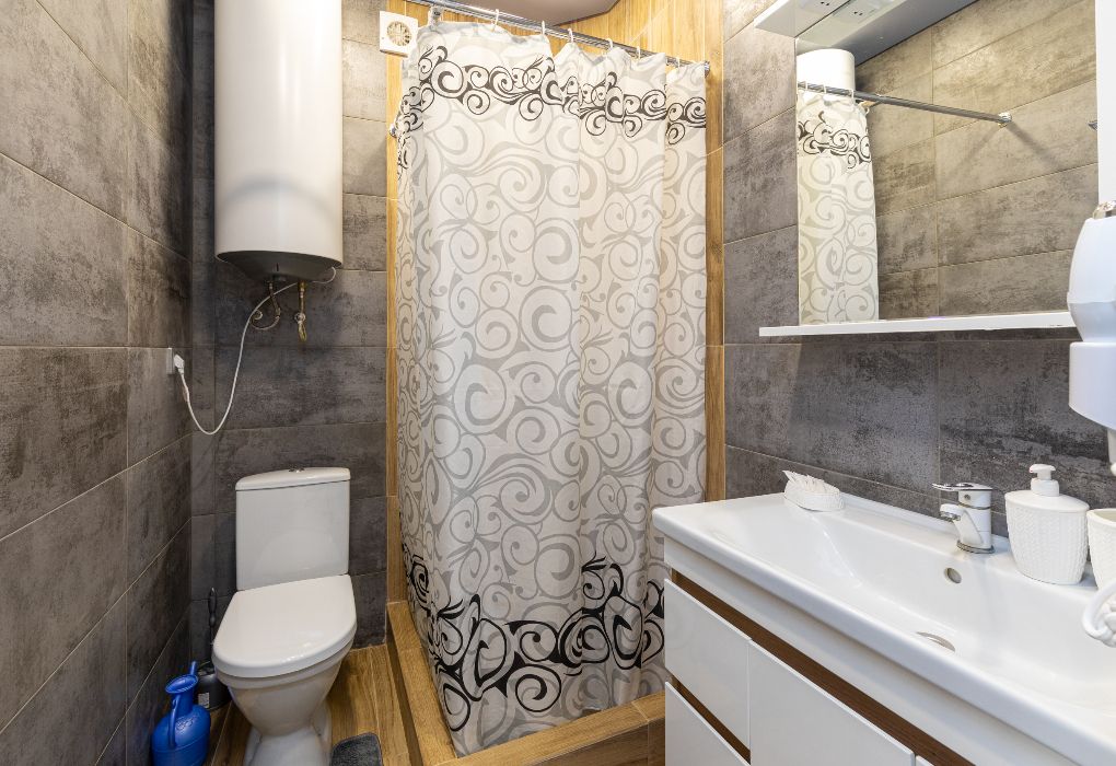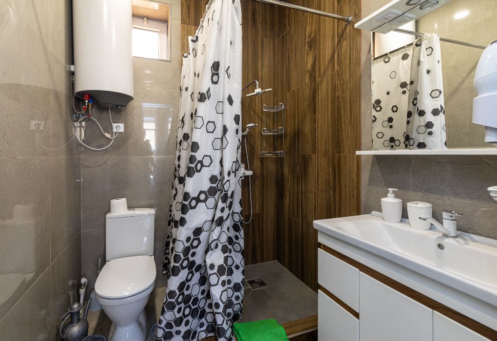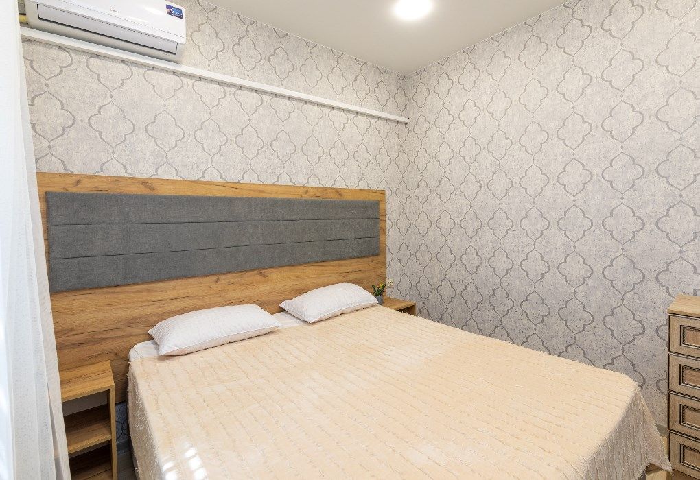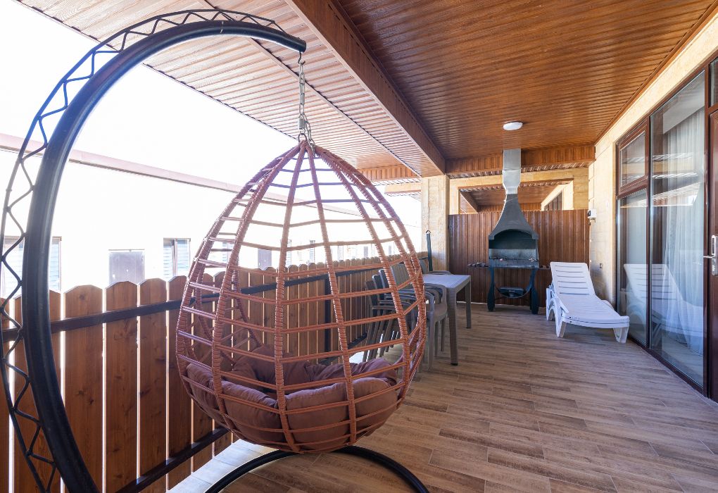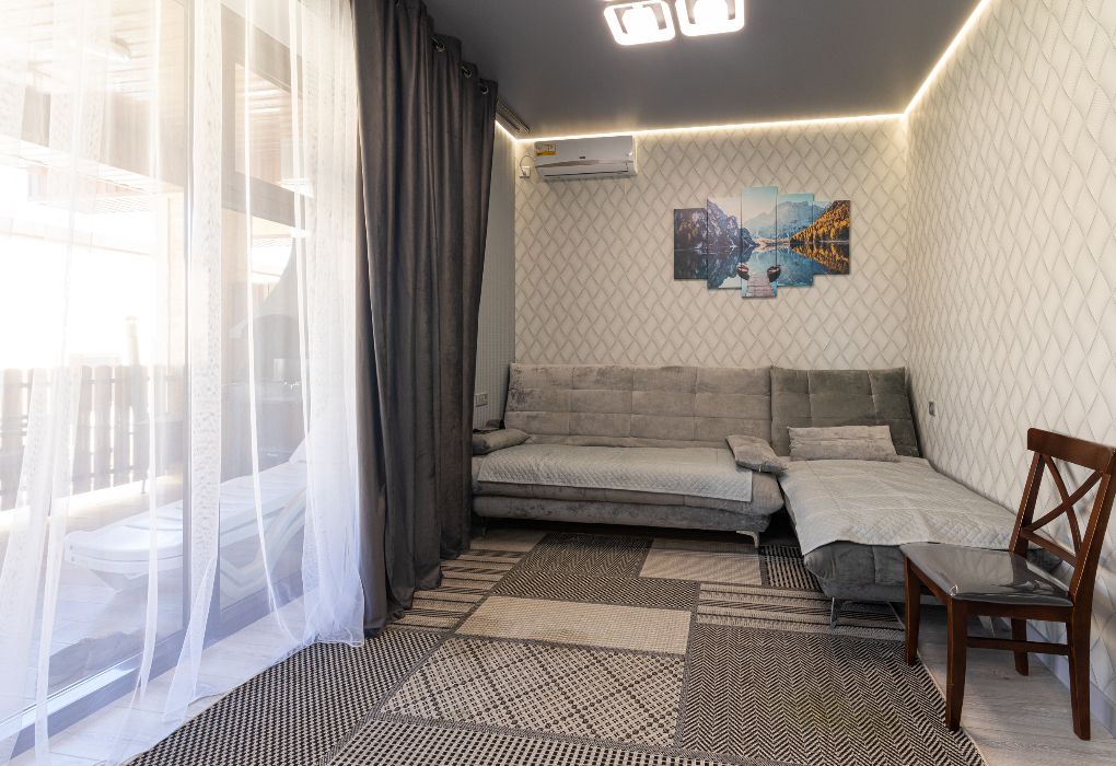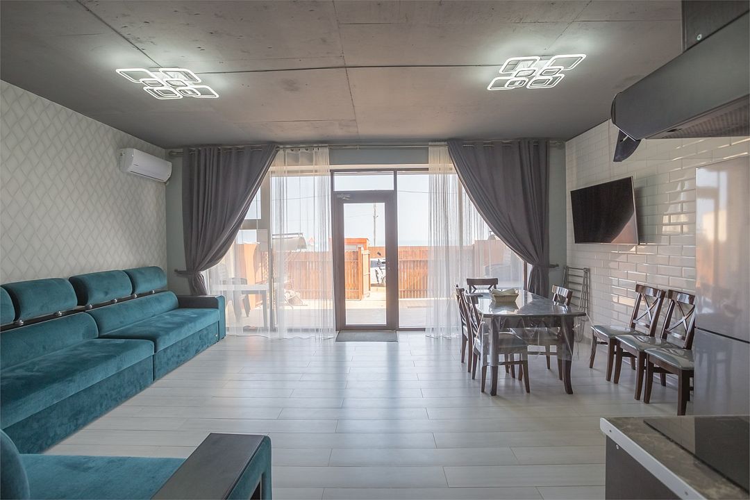 Wi-Fi, холодильник, кондиционер, фен, плита для приготовления пищи, теплый пол, тапочки, терраса, две односпальные или большая двуспальная кровать, стулья, вешалки, зеркало, две комнаты, унитаз, раковина, гостиная зона, душ, плиточное покрытие, вид во двор, стол, туалетные средства, туалет, мангал, диван-кровать, частичный вид на море, телевизор со Smart TV, теплые полы, два дивана-кровати, угловой диван-кровать, можно с питомцамиВ апартаментах