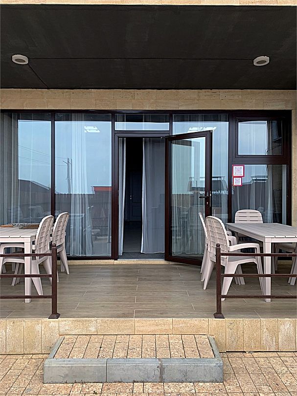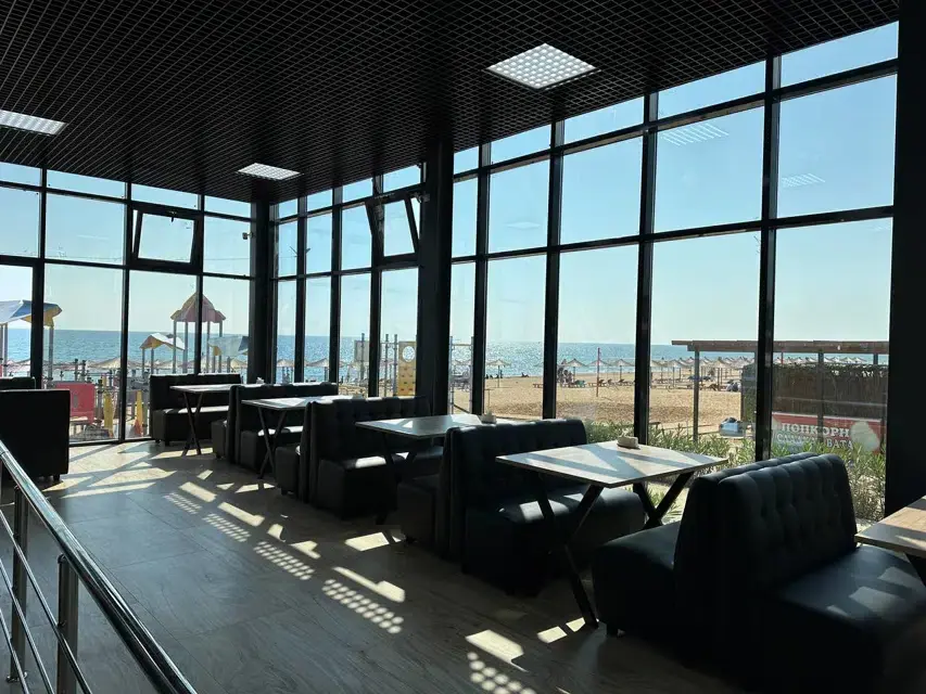 На территории комплекса прямо с видом на море располагается столовая-ресторан.