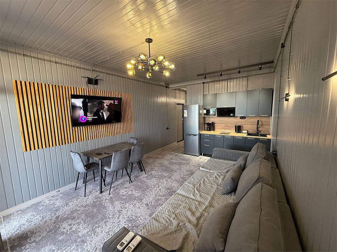 Wi-Fi, холодильник, кондиционер, фен, плита для приготовления пищи, санузел, теплый пол, тапочки, терраса, две односпальные или большая двуспальная кровать, стулья, вешалки, зеркало, две комнаты, кухня, набор посуды, чайник, унитаз, гостиная зона, отдельный вход в номер, душ, плиточное покрытие, вид во двор, кухонная посуда, стаканы, кухонная утварь, стол, туалетные средства, туалет, мангал, принадлежности для барбекю, кухонный уголок, москитная сетка, телевизор со Smart TV, теплые полы, номер для некурящих, два дивана-кровати, угловой диван-кровать, межкомнатная дверь, уборка номера, можно с питомцамиВ апартаментах