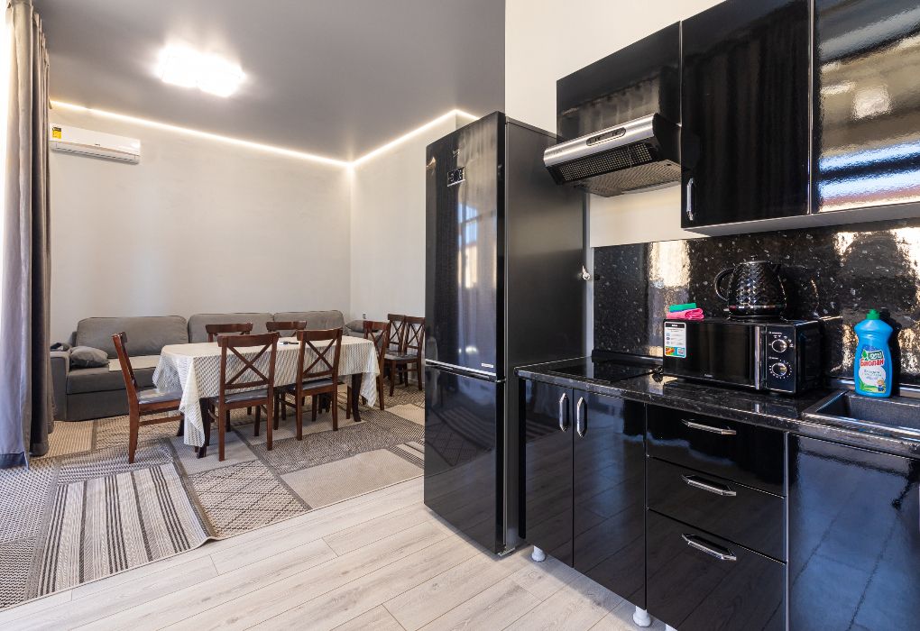 Wi-Fi, холодильник, кондиционер, фен, плита для приготовления пищи, санузел, теплый пол, банные полотенца, тапочки, балкон, балкон с шезлонгом, терраса, диван, стулья, вешалки, кухня, звуконепроницаемые стены и окна, чайник, унитаз, раковина, гостиная зона, отдельный вход в номер, душ, плиточное покрытие, две спальни, вид во двор, высокие потолки, две кровати «Queen size», стул, стол, туалетные средства, туалет, мангал, принадлежности для барбекю, панорамные окна, диван-кровать, частичный вид на море, телевизор со Smart TV, теплые полы, номер для некурящих, балкон с боковым видом на море, угловой диван-кровать, можно с питомцамиВ апартаментах