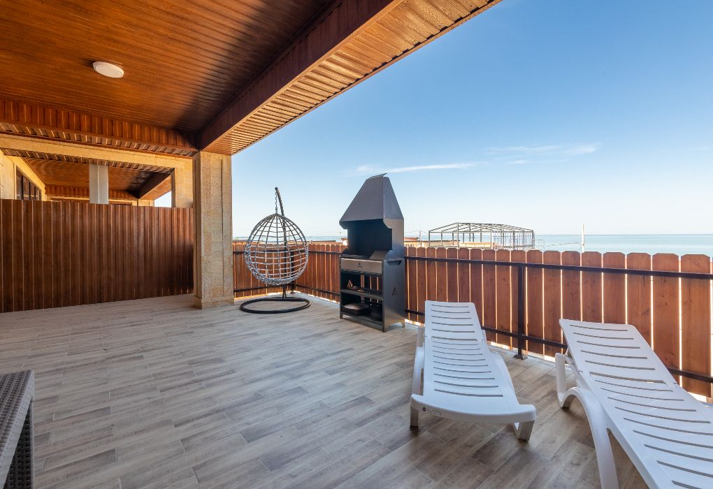 отличный номер с потрясающим видом на море без препятствий, во дворе имеется мангал, столы и стулья для больших компаний (до 8 человек), крытая терраса и шезлонги для загара.Услуги и удобства