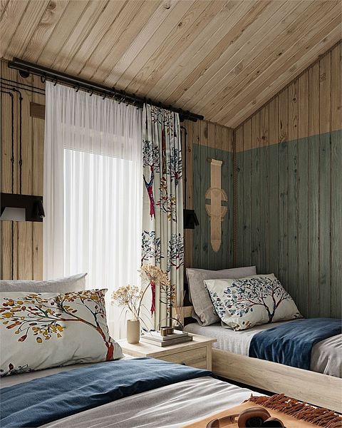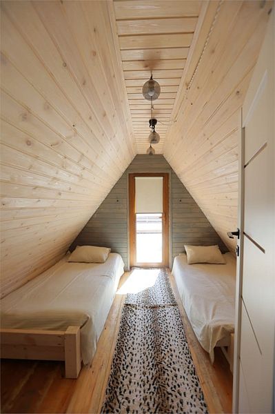 Уютный двухместный домик с видом на горы и лесистую местность. Оснащен двумя односпальными кроватями.