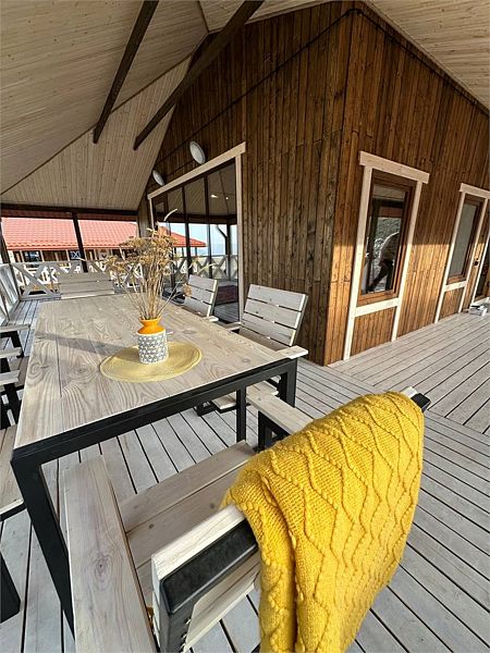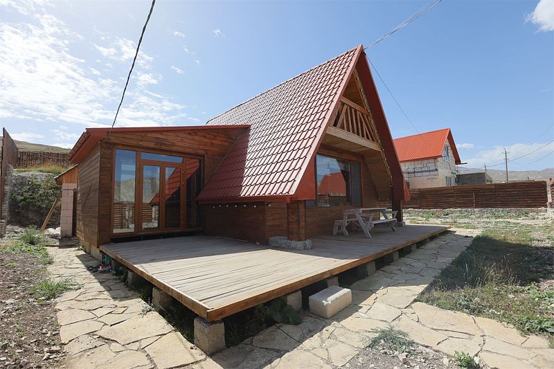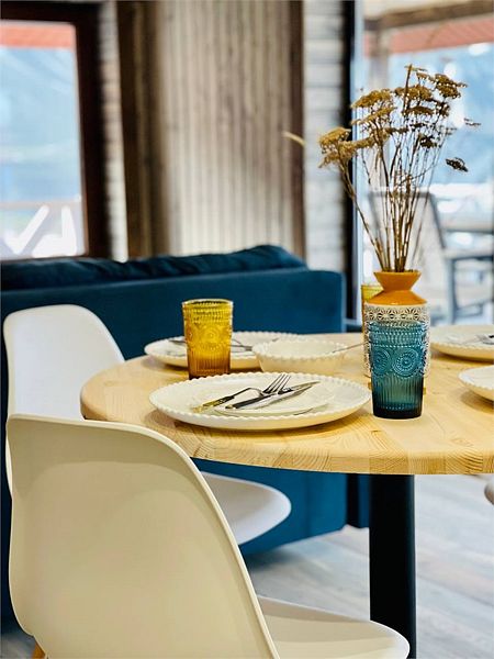 Уютные семейные домики с панорамным, открывающими незабываемый вид на Кавказский хребет. 2 спальни и просторная гостевая с кухонной зоной, а также терраса с садовой мебелью.