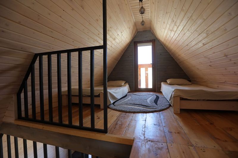 Двухместный коттедж с панорамной крышей, которая открывает незабываемый вид на звездное небо. Оснащен всем необходимым для комфортного проживания.