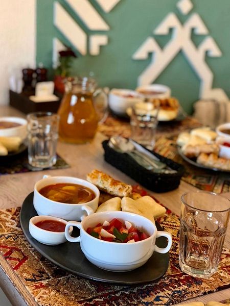 Уютное кафе на территории комплекса поражает разнообразием блюд, в которых воплощены лучшие кулинарные традиции аварского народа. Здесь вы сможете попробовать аварский хинкал, курзе, чуду и множество других аппетитных и сытных угощений, приготовленных с особым мастерством.