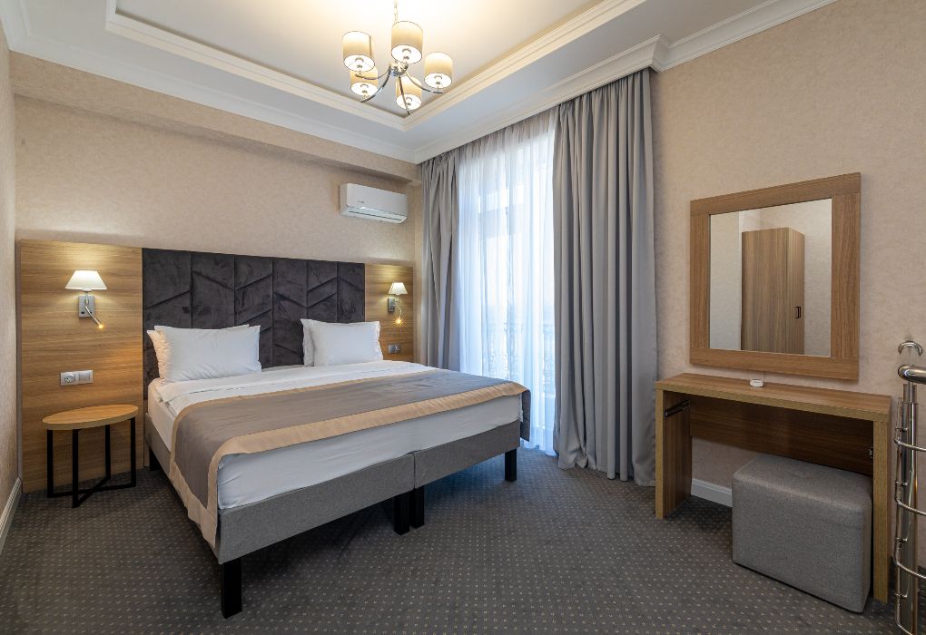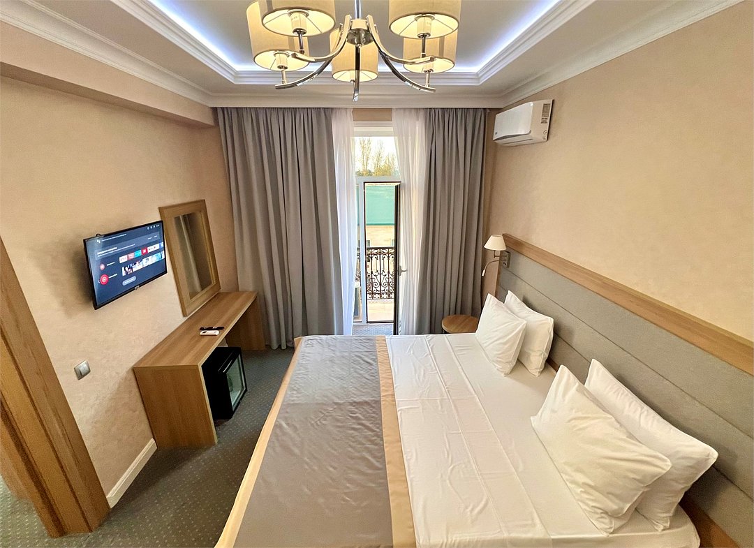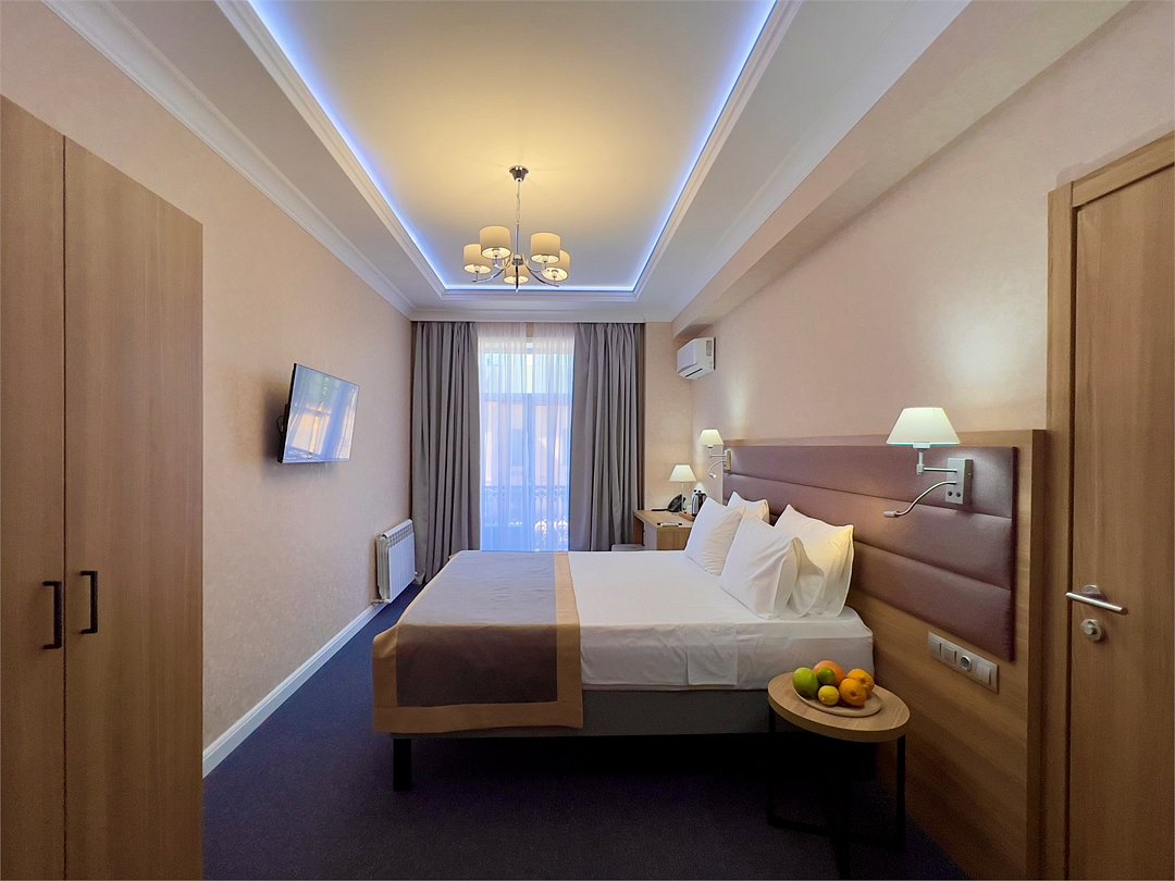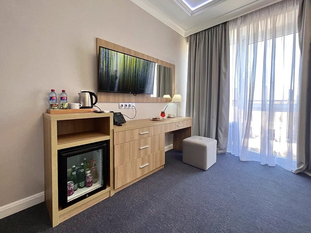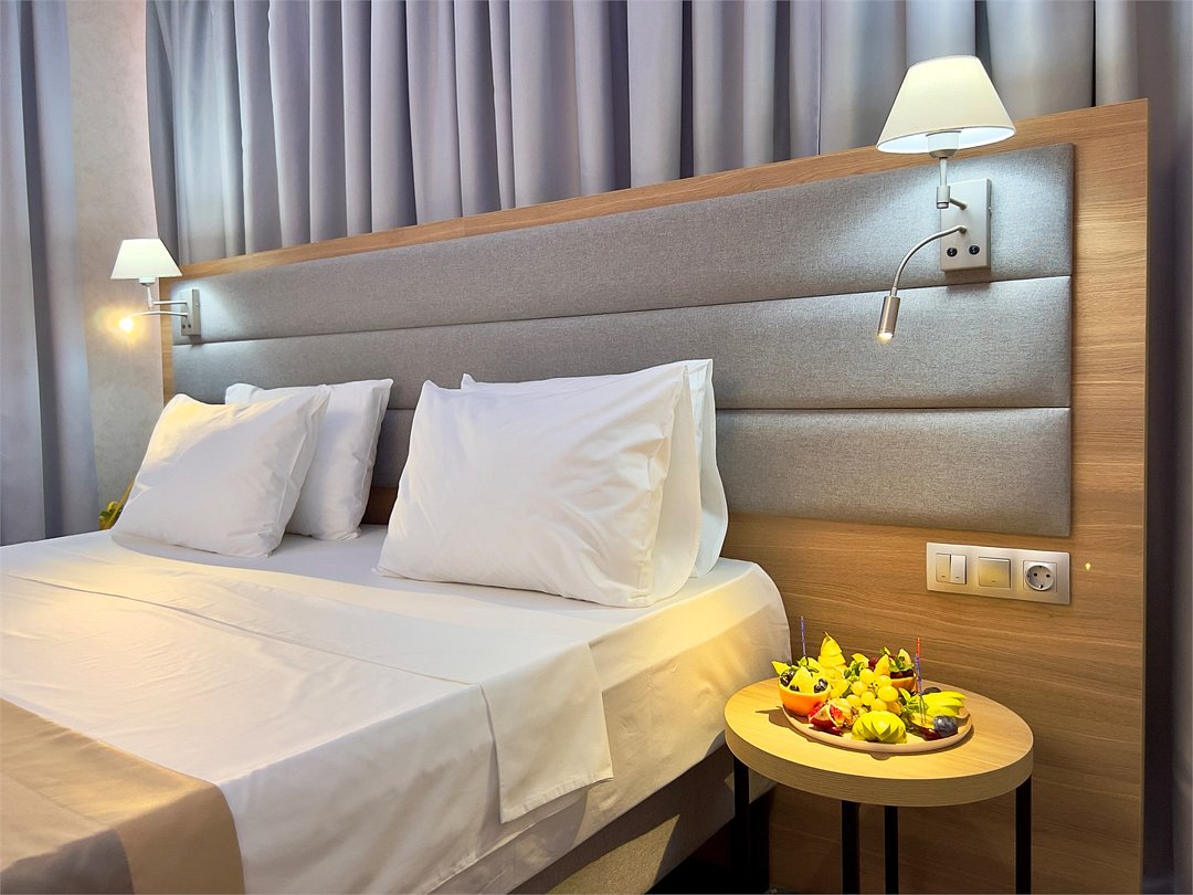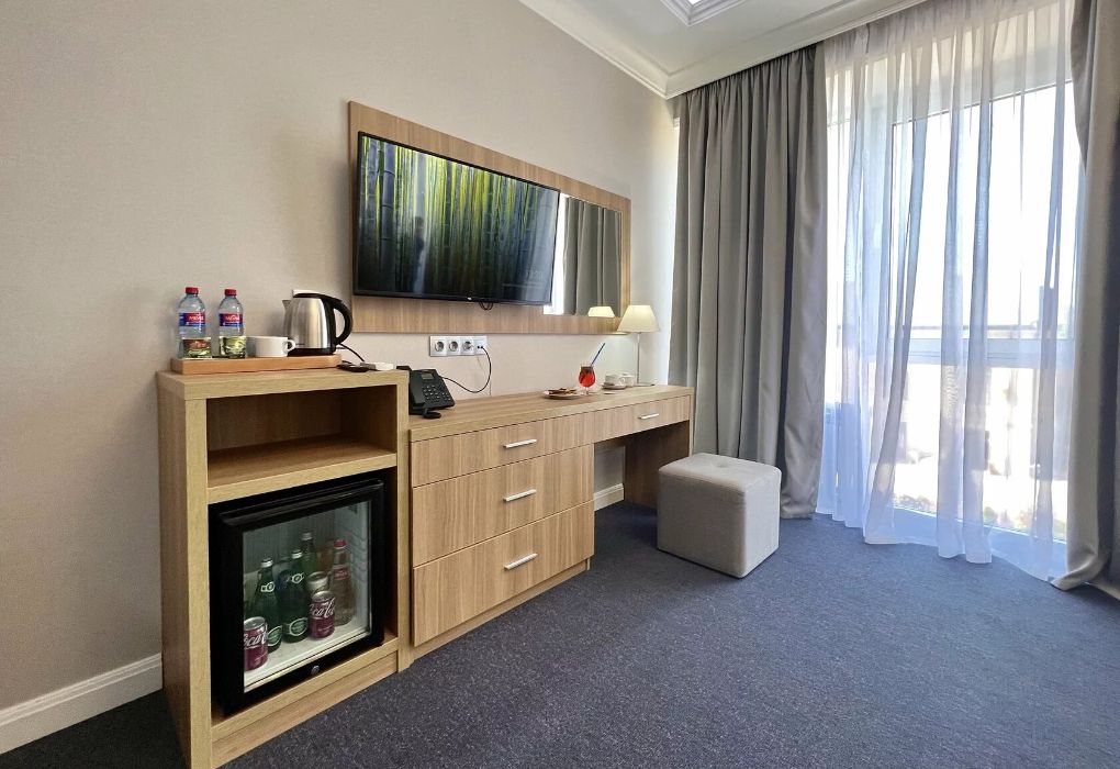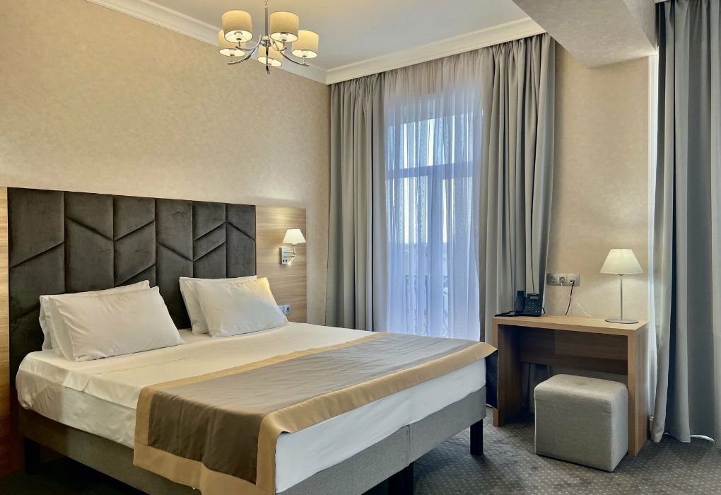 Уютный номер площадью 18 м² в современном отеле категории 4 звезды — идеальное решение для тех, кто ценит комфорт, эстетику и атмосферу спокойствия. Подойдёт как для одного гостя, так и для пары, желающей провести время у моря с максимальным удобством. В номере: удобная двуспальная кровать или две раздельные кровати с ортопедическими матрасами; Smart TV, мини-холодильник, климат-контроль, Wi-Fi, телефон; фен, халаты, тапочки, набор косметики; балкон с видом на море или горы; сейф, чайная станция с чайником и посудой. Гости Derbent Premium Hotel&SPA 4* наслаждаются полным спектром услуг премиального уровня: завтраки «Шведский стол» из свежих и натуральных продуктов; крытый бассейн 25×12 м, сауна, джакузи, тренажёрный зал; SPA-центр и хаммам с зонами релакса и профессиональным массажем; детский клуб и аттракционы на закрытой, охраняемой территории; ресторан, банкетный зал и бар; бесплатная парковка, служба приёма 24/7, уход за территорией и сервис уровня 4*. Отель расположен в живописной части города — между морем и горами, всего в 5 минутах от набережной Дербента. Здесь сочетаются стиль, спокойствие и вдохновение. Забронируйте номер «Стандарт-мини» уже сегодня — откройте для себя отдых уровня 4★ у побережья Каспийского моря!Услуги и удобства