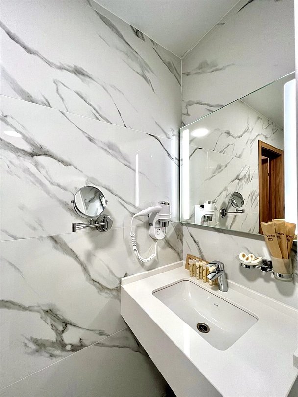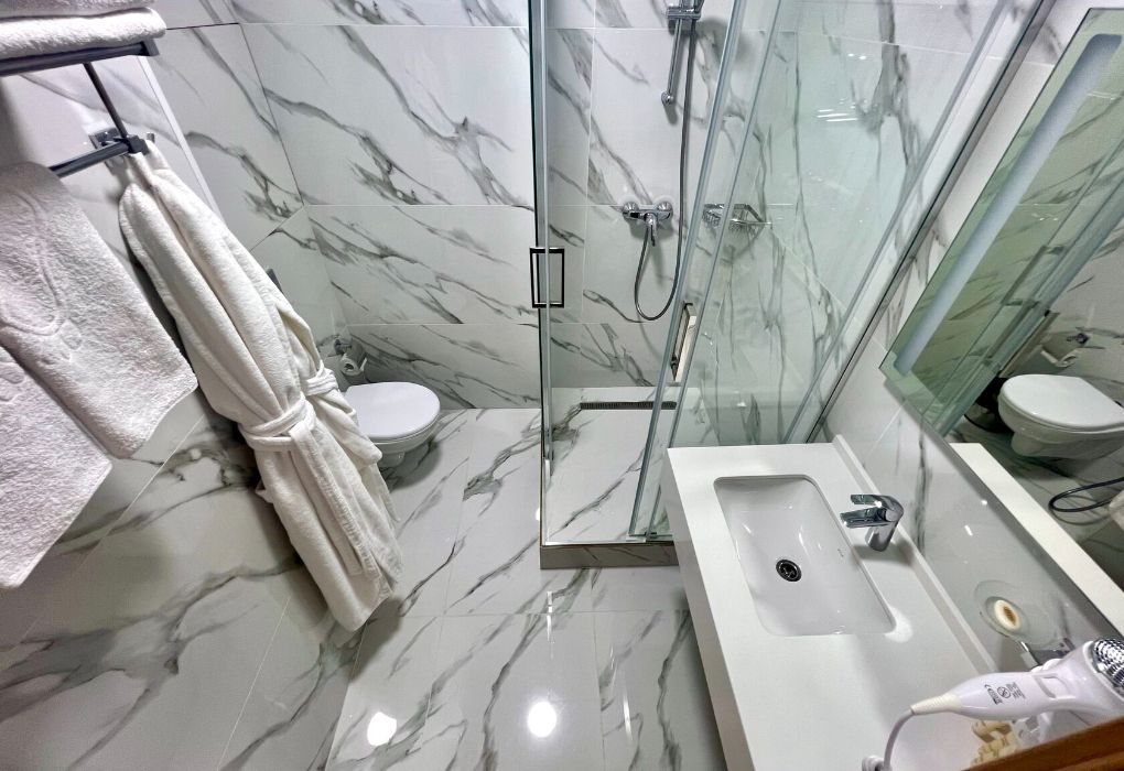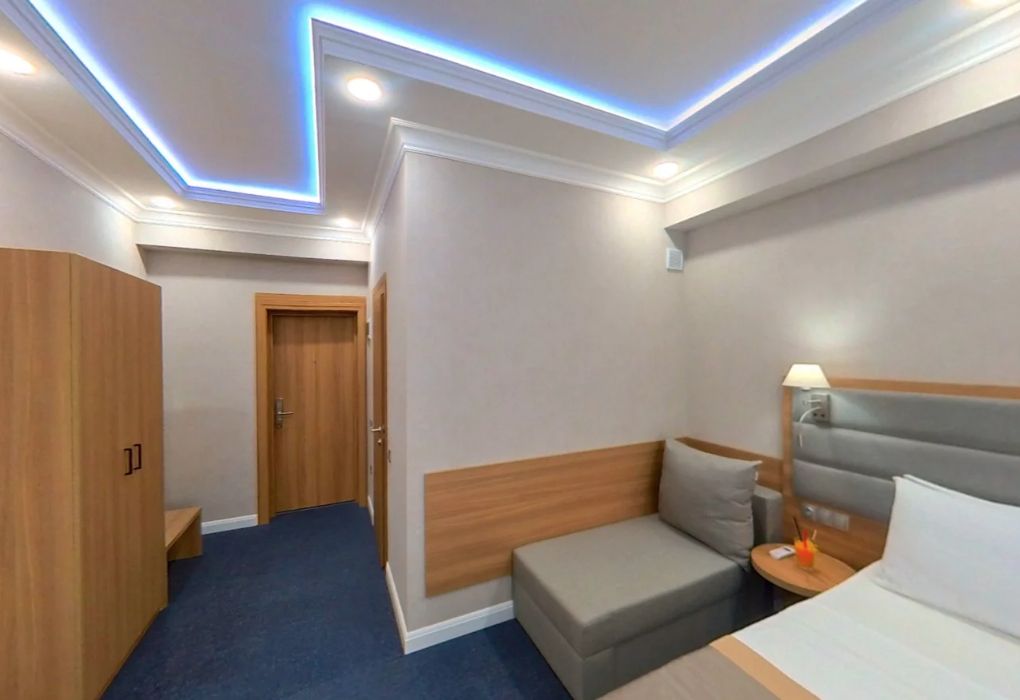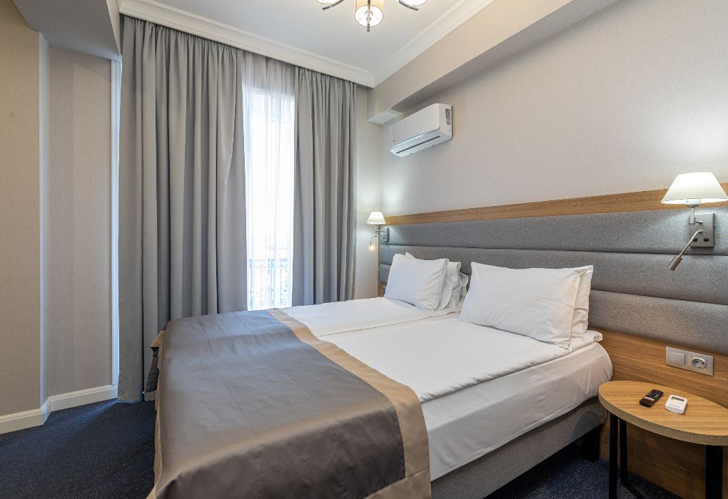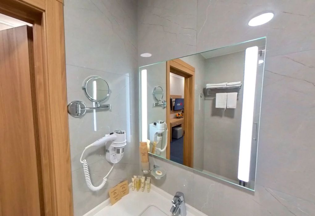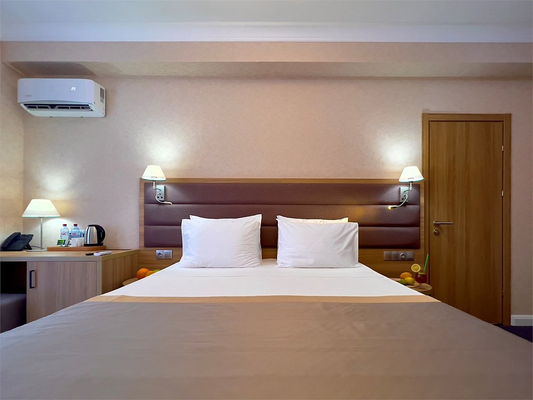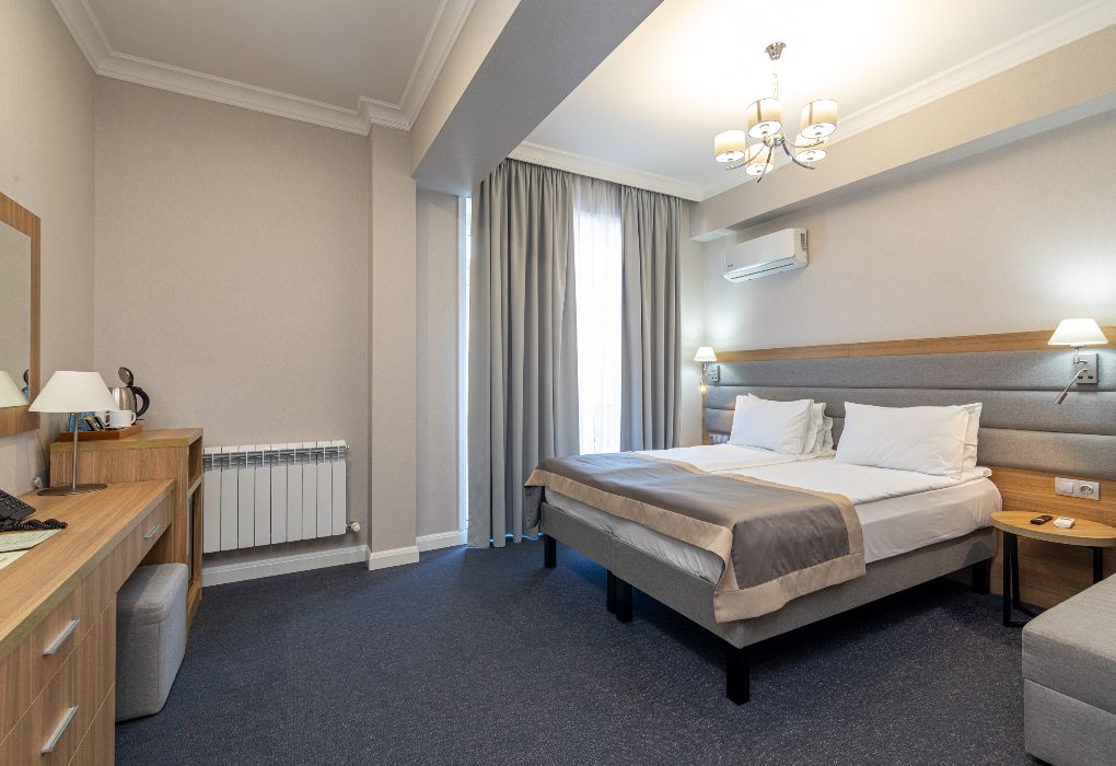 Уютный номер площадью 18 м² в современном отеле категории 4 звезды — идеальное решение для тех, кто ценит комфорт, эстетику и атмосферу спокойствия. Подойдёт как для одного гостя, так и для пары, желающей провести время у моря с максимальным удобством. В номере: удобная двуспальная кровать или две раздельные кровати с ортопедическими матрасами; Smart TV, мини-холодильник, климат-контроль, Wi-Fi, телефон; фен, халаты, тапочки, набор косметики; балкон с видом на море или горы; сейф, чайная станция с чайником и посудой. Гости Derbent Premium Hotel&SPA 4* наслаждаются полным спектром услуг премиального уровня: завтраки «Шведский стол» из свежих и натуральных продуктов; крытый бассейн 25×12 м, сауна, джакузи, тренажёрный зал; SPA-центр и хаммам с зонами релакса и профессиональным массажем; детский клуб и аттракционы на закрытой, охраняемой территории; ресторан, банкетный зал и бар; бесплатная парковка, служба приёма 24/7, уход за территорией и сервис уровня 4*. Отель расположен в живописной части города — между морем и горами, всего в 5 минутах от набережной Дербента. Здесь сочетаются стиль, спокойствие и вдохновение. Забронируйте номер «Стандарт-мини» уже сегодня — откройте для себя отдых уровня 4★ у побережья Каспийского моря!Услуги и удобства