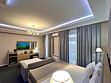 Wi-Fi, кондиционер, фен, электронные замки, душевая кабина, банные принадлежности, халаты, банные полотенца, пляжные полотенца, тапочки, гигиенические средства, две односпальные или большая двуспальная кровать, диван, шкаф для одежды, вешалки, багажная тумба, зеркало, комод, чайный набор, чайник, унитаз, вид на море, кресло, вид во двор, тумба, туалет, раскладной диван, раскладное кресло, внутренний телефон, мини-холодильник, телевизор со Smart TV, собственный бассейнВ гостиничном номере