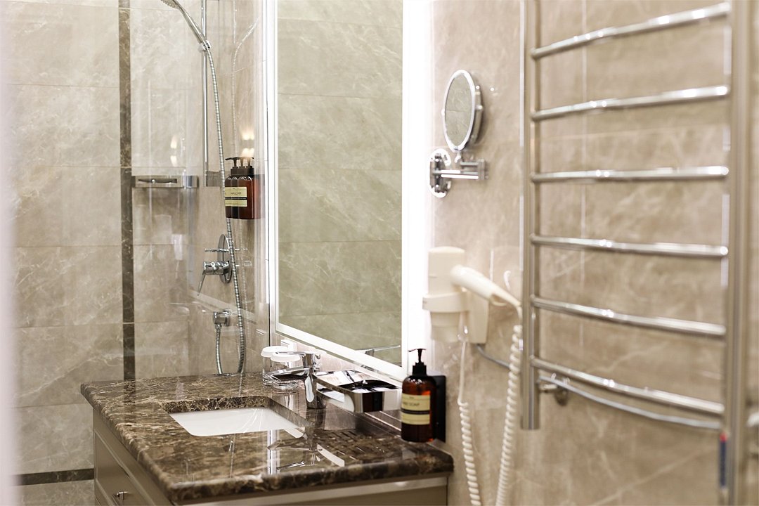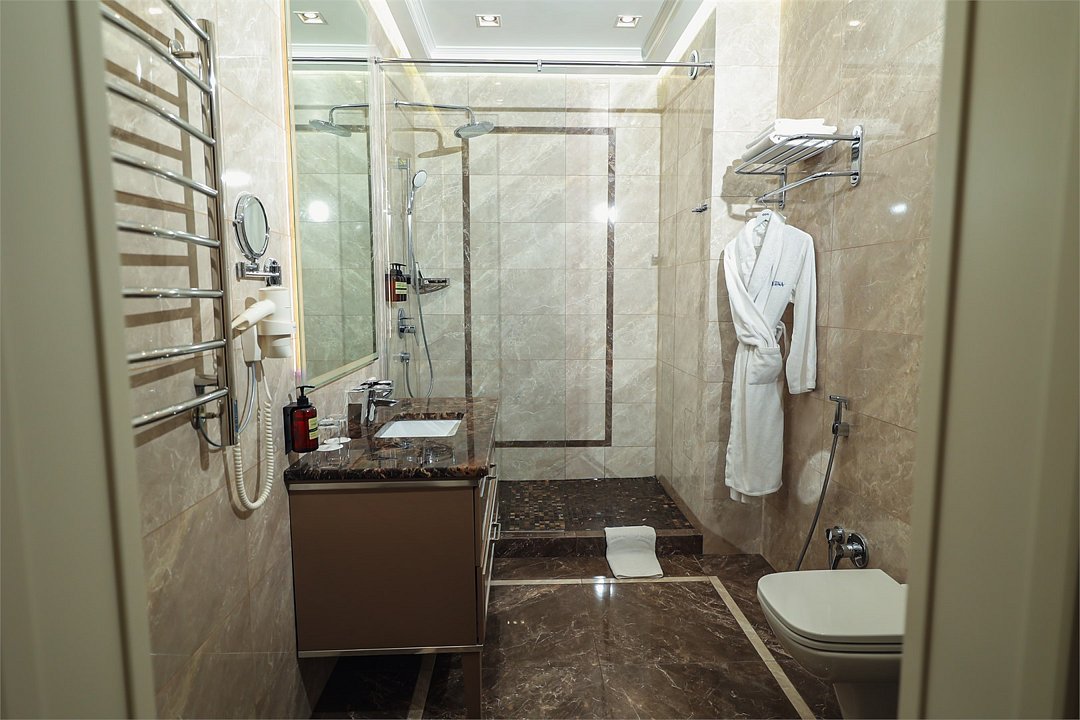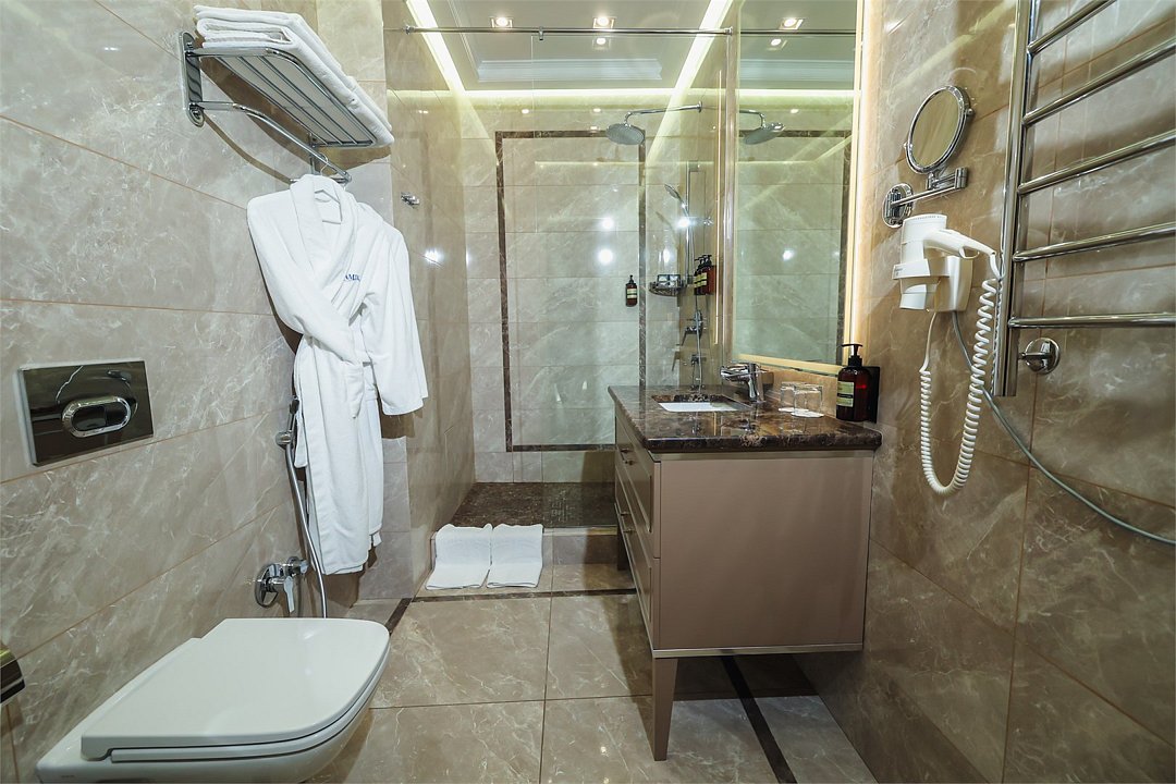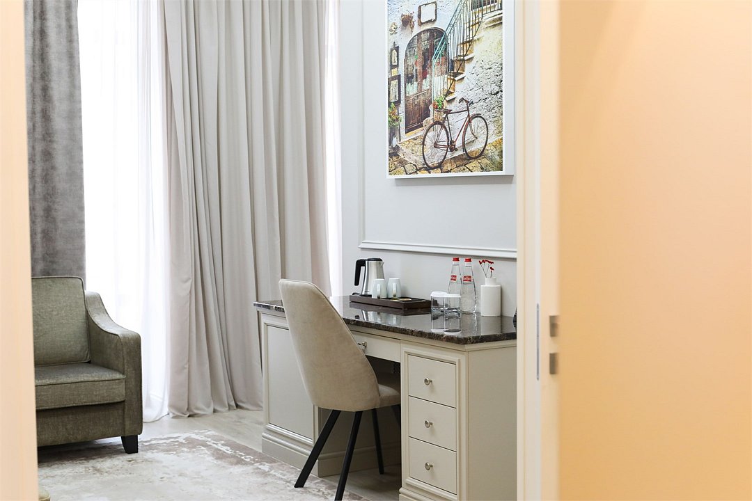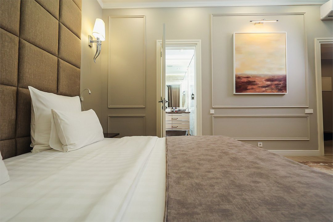 спутниковое телевидение, Wi-Fi, интернет, телефон, кондиционер, система климат-контроля, светильник, настольные лампы, фен, будильник, электронные замки, утюг, ванная комната, санузел, теплый пол, банные принадлежности, халаты, банные полотенца, тапочки, гигиенические средства, косметические средства, гипоаллергенное белье, гладильная доска, ортопедический матрас, кресла, стулья, письменный стол, багажная тумба, зеркало, ковер, звуконепроницаемые стены и окна, мини-бар, письменные принадлежности, чайный набор, набор посуды, информационная карта, меню, сейф, чайник, унитаз, раковина, мягкая мебель, косметическое зеркало, питьевая вода, отопление, душ, вид на город, кресло, вид во двор, ламинат, высокие потолки, стаканы, туалетный столик, туалетные средства, туалет, сплит-система, панорамные окна, сушилка для белья, цифровое тв, раскладной диван, внутренний телефон, телевизор с плоским экраном, мини-холодильник, шкаф-купе, гостиничная парфюмерия, телевизор со Smart TV, номер для некурящих, USB-порт, рабочий стол, гигиенический душ, кровать «Super king size», чайная станция, без питомцевВ гостиничном номере