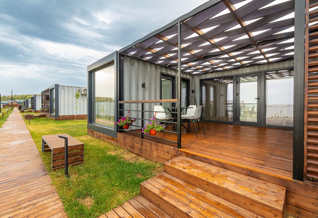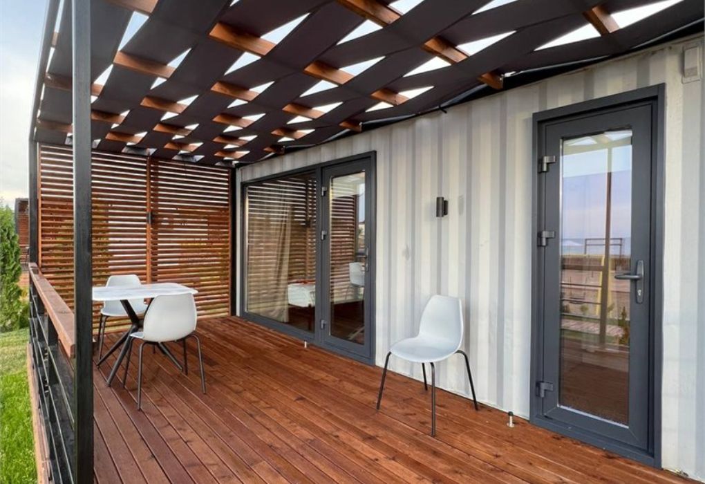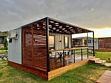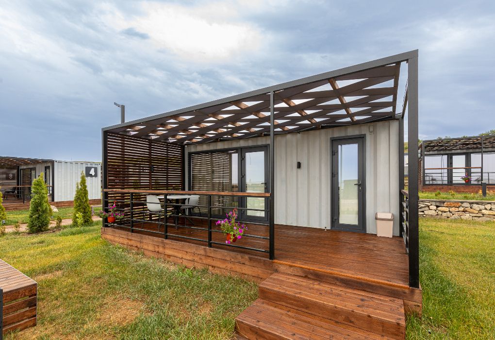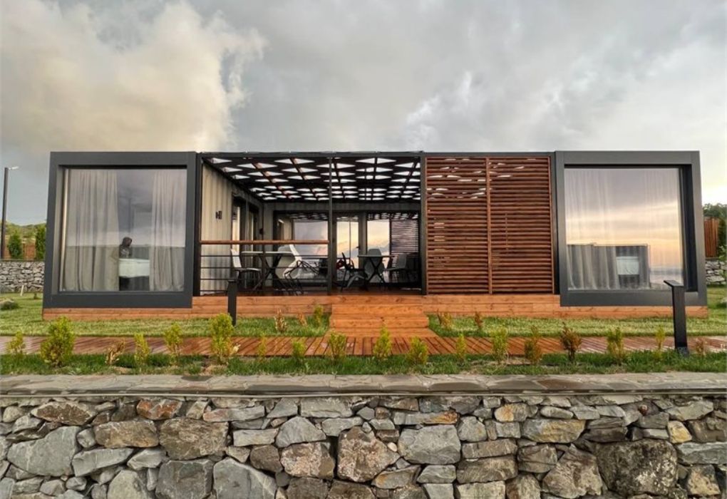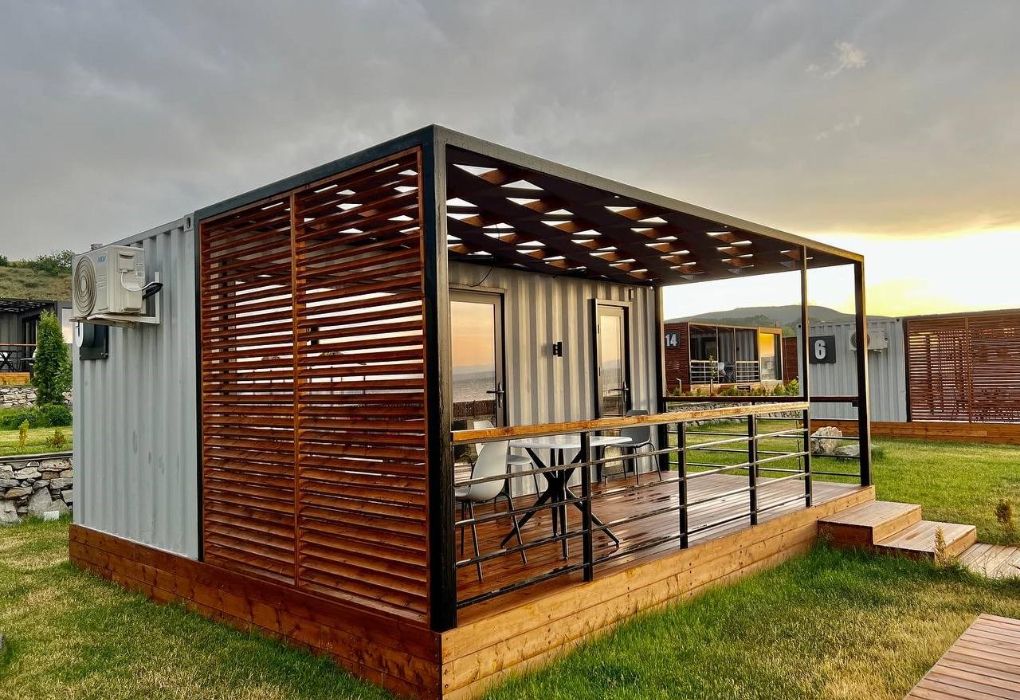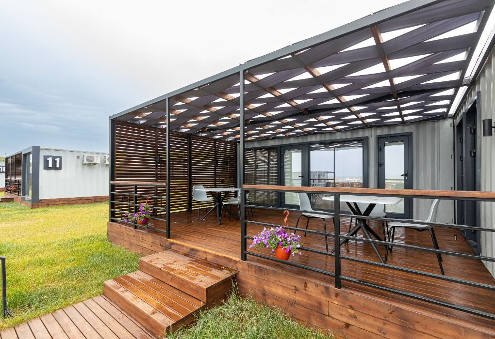 Комплекс включает в себя уютные модульные домики, разместившиеся на благоустроенной территории площадью 1 гектар. В домиках, способных вместить от 2-х до 9 гостей, светлые современные интерьеры, оборудована кухня, есть санузел с душем или ванной.