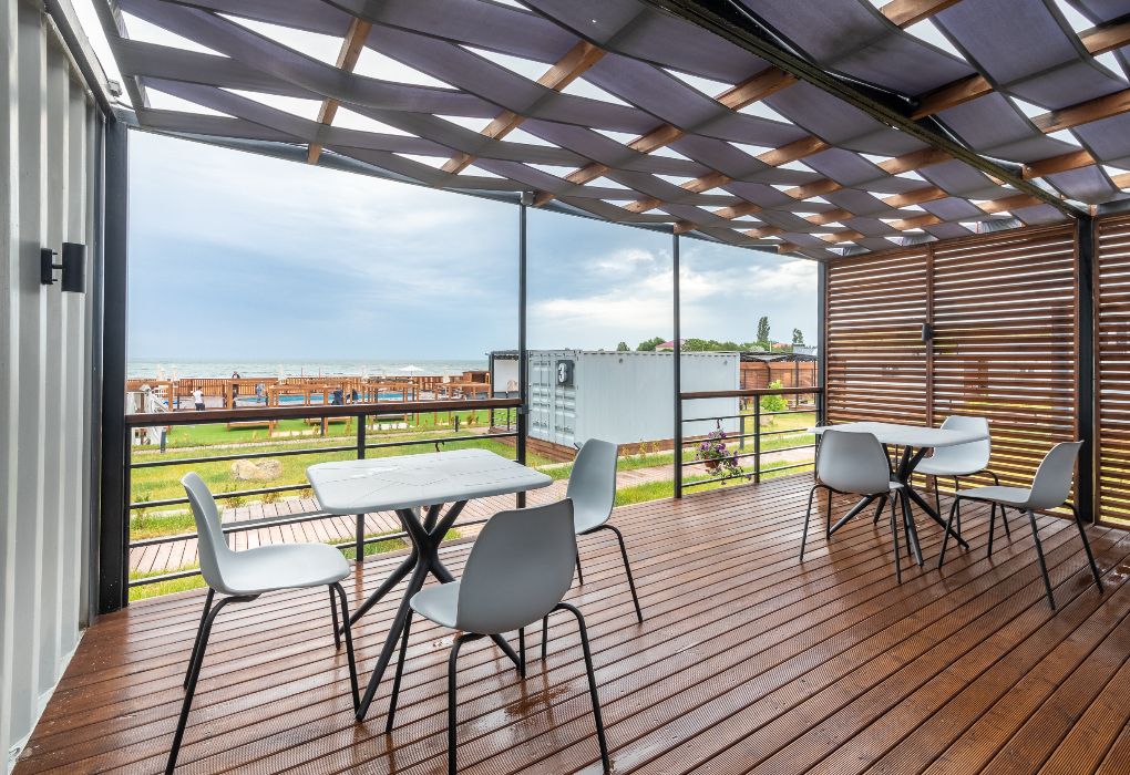 Просторный пятикомнатный домик площадью 40 м² подойдёт для тех, кто ценит комфорт, личное пространство и отдых в кругу семьи или друзей. Внутри – четыре отдельные спальни: две с двуспальными кроватями и видом на море, и две с двумя односпальными кроватями. В центре – кухня-гостиная с обеденной зоной и диваном, полностью укомплектованная бытовой техникой и посудой. В домике: Smart TV, сплит-система, современный санузел, фен, комплект банных и пляжных полотенец. А на террасе с видом на море можно с утра до вечера наслаждаться солнцем, воздухом и неспешным ритмом отпуска.Услуги и удобства