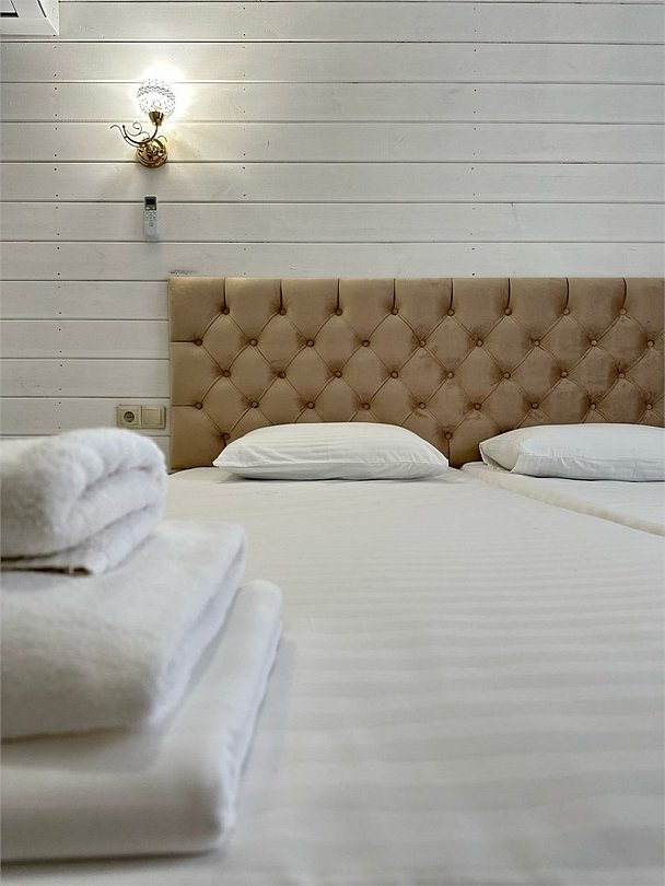 Номер оборудован отдельной системой климат-контроля. Полотенца, постельное белье на каждого гостя.