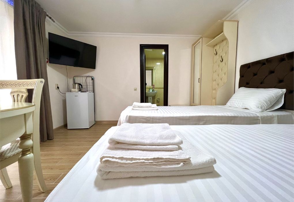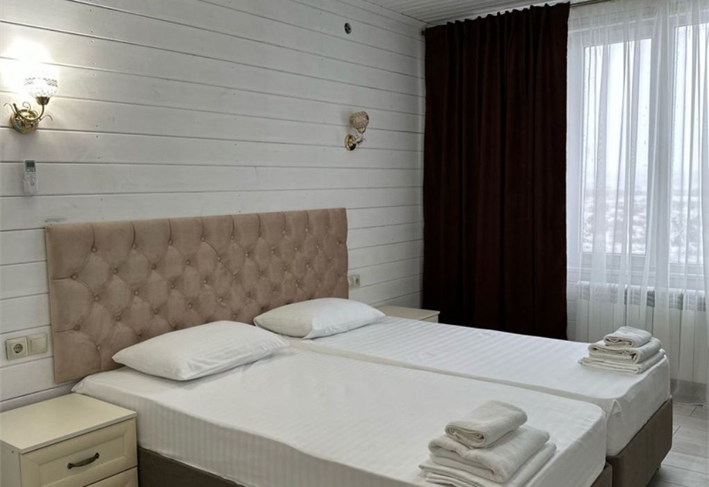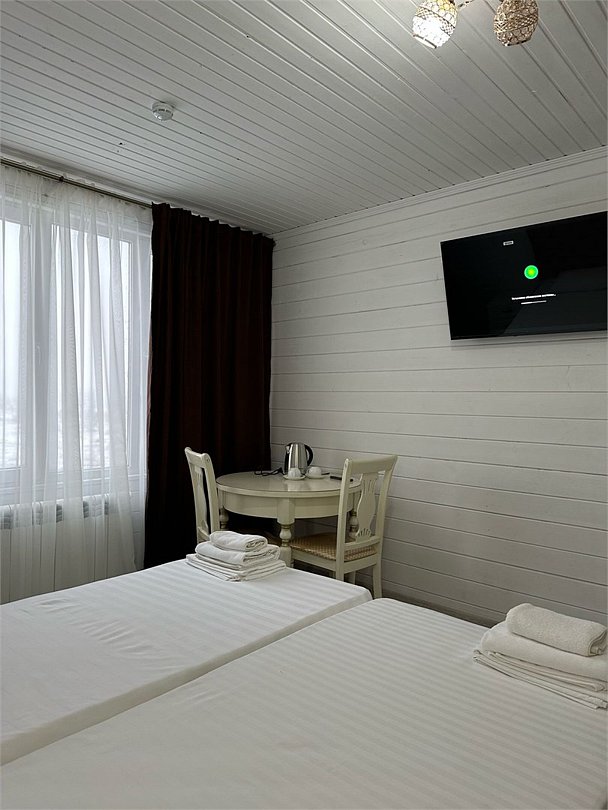 В номере есть 2 кровати (90х190 см), стулья стол, тумба, телевизор, кондиционер, Wi-fi.