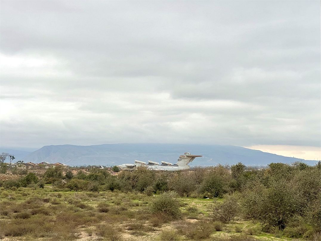 Выход из коттеджа прямо на пляж. Из окон открывается роскошный вид на Каспийское море, на горы, на достопримечательность экраноплан "Лунь".