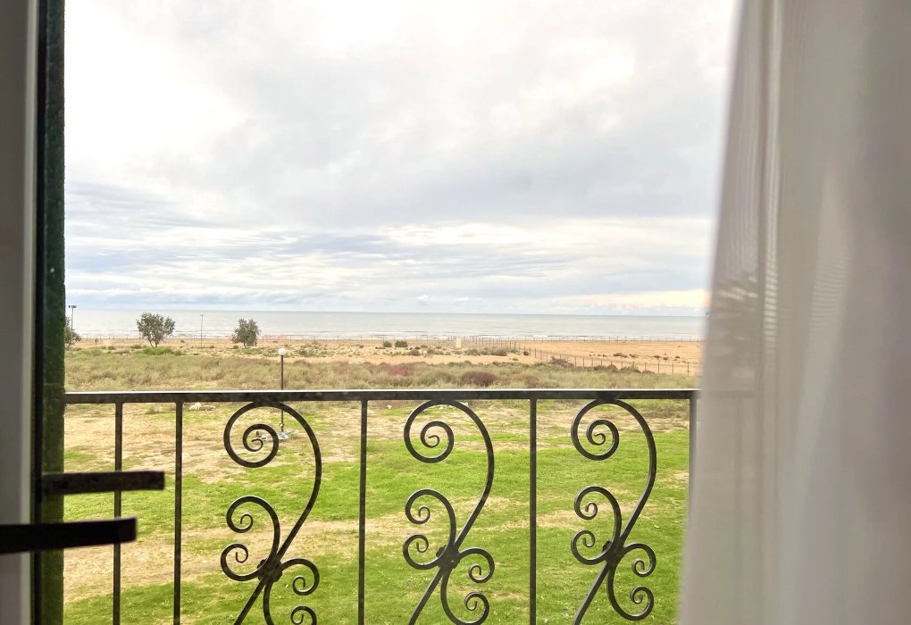 Двухместный номер с видом на море и с выходом на пляж и террасой. В номере санузел, ортопедические спальные боксы с высокими матрацами, гипоаллергенные спальные принадлежности, белоснежное белье и полотенца. Номер оборудован в светлых тонах. В номере имеется кондиционер, холодильник, телевизор смарт тв, чайник. Вид из окна на побережье Каспийского моря.