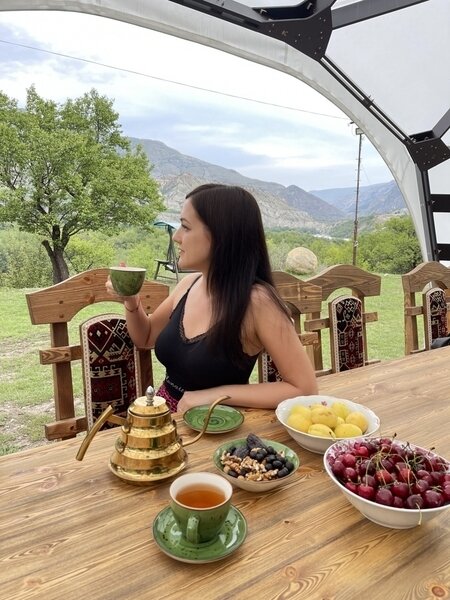 Семейный отдыхДостоинстваЭто место - настоящий рай. Хозяин принял нас как родных, создав теплую и уютную атмосферу. Здесь мы по-настоящему ощутили гармонию с природой, наслаждаясь красотой гор, рек и сочной зеленью. Абрикосовые деревья повсюду. На территории есть огромный, теплый бассейн с подогревом, баня на дровах и чан для релаксации. В соседнем домашнем кафе можно отведать вкусные блюда, а поблизости расположены множество интересных туристических мест.