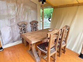 Для размещения доступно пять уютных тент-хаусов, в которых предусмотрены все необходимые удобства, чтобы Ваш отдых был комфортным.