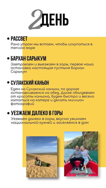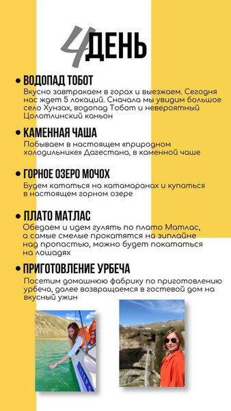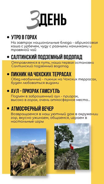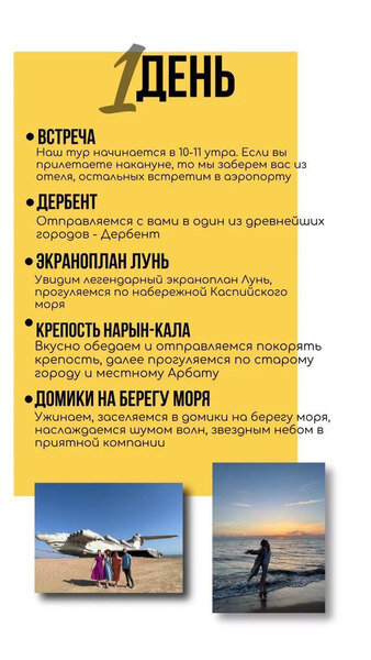 Вы можете выбрать любой из вариантов тура, начиная от трапа самолета г. Махачкала.