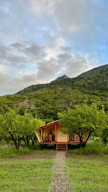 «Сад Глемпинг» — это эко-отель, расположившийся среди плодоносящего абрикосового сада.