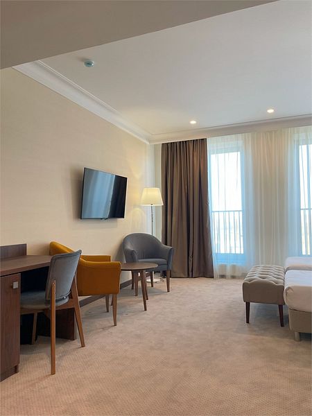 Просторный номер Twin с двумя кроватями, удобной рабочей зоной и Smart-TV - идеальное сочетание для насыщенного отдыха.