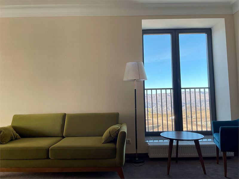 Открывающиеся из окон великолепные виды на Кавказский хребет добавляют этому месту особый шарм, а также можно выйти на открытую террасу, чтобы в полной мере насладиться окружающими красотами и свежим воздухом.